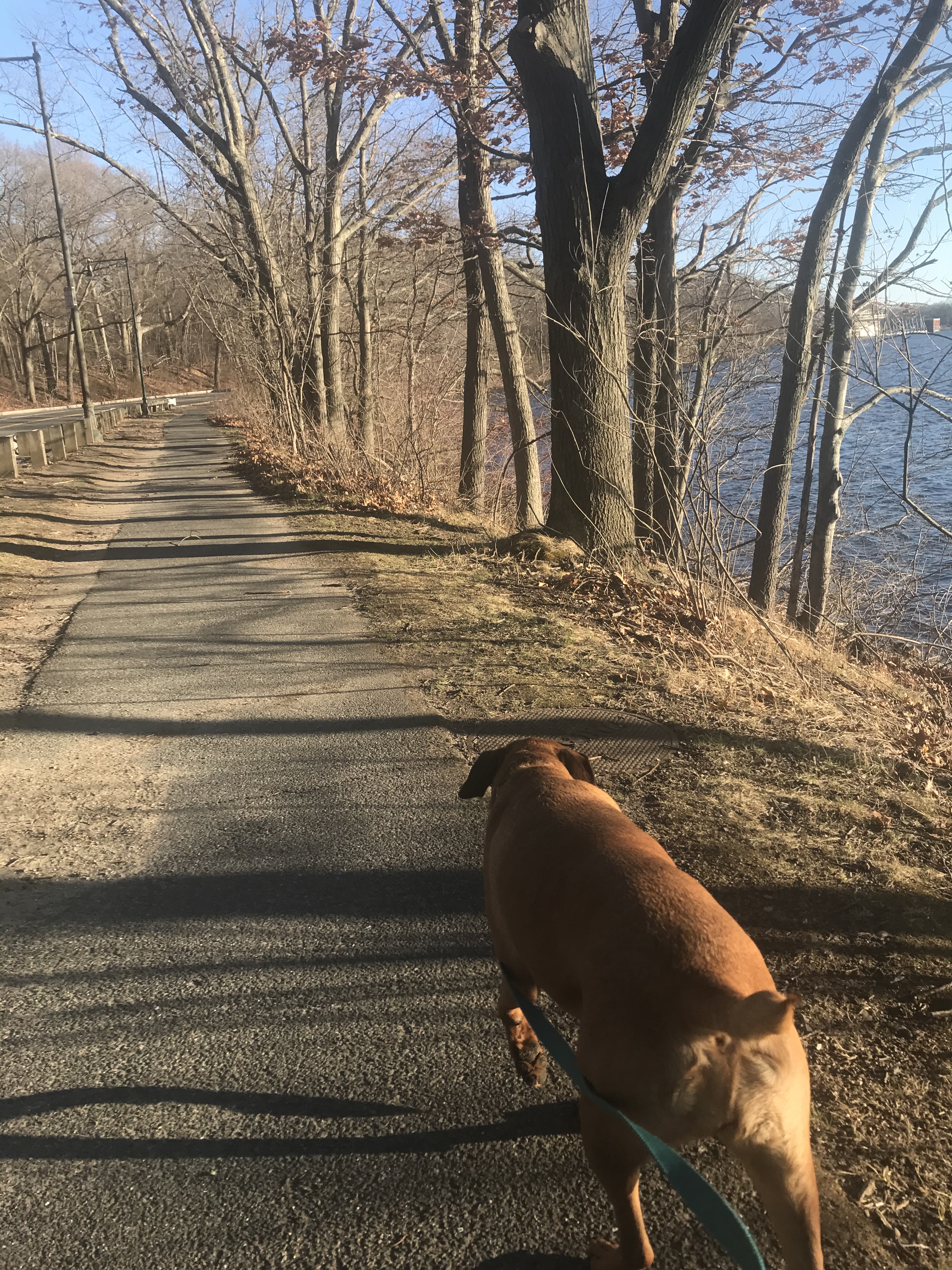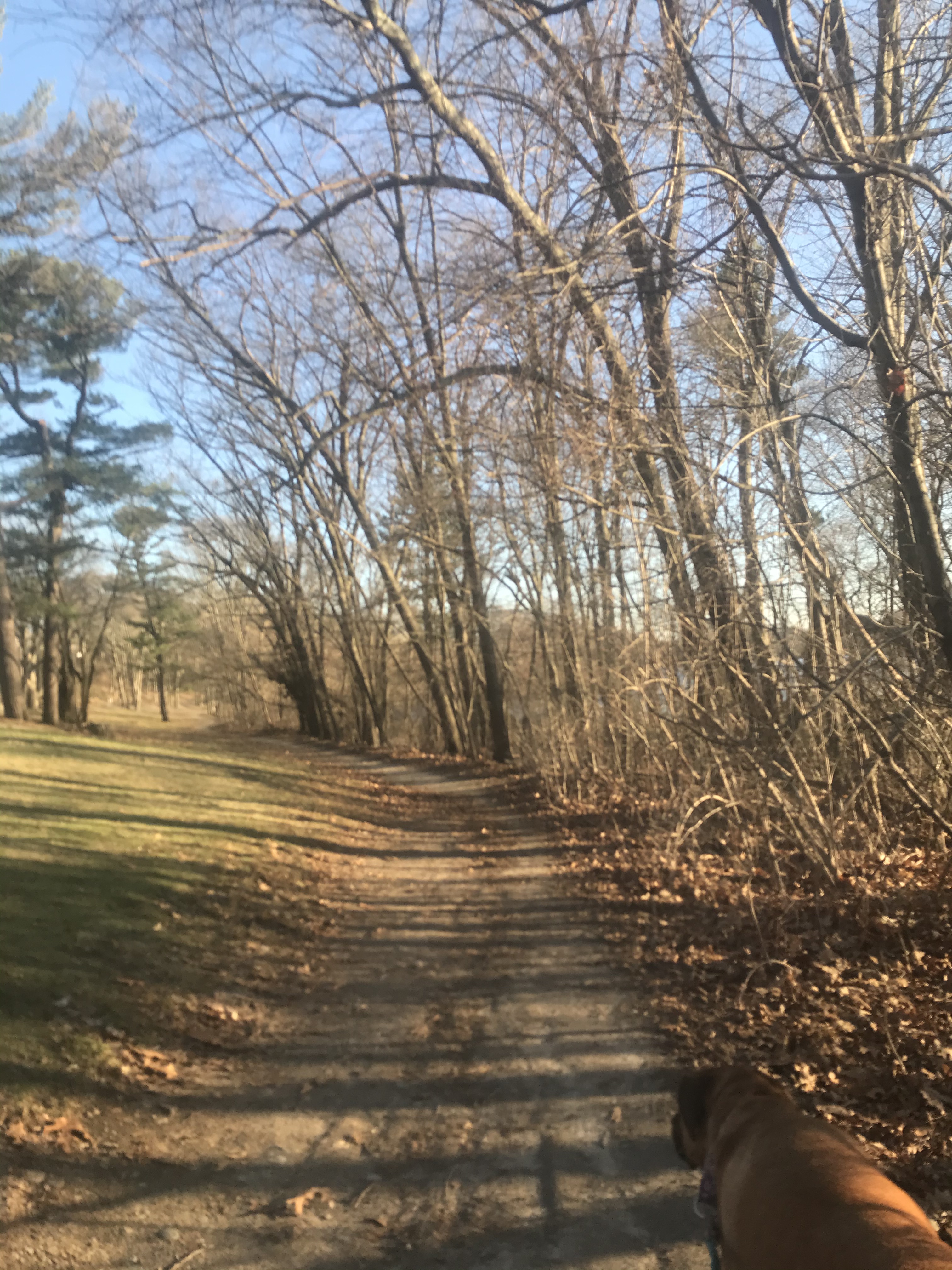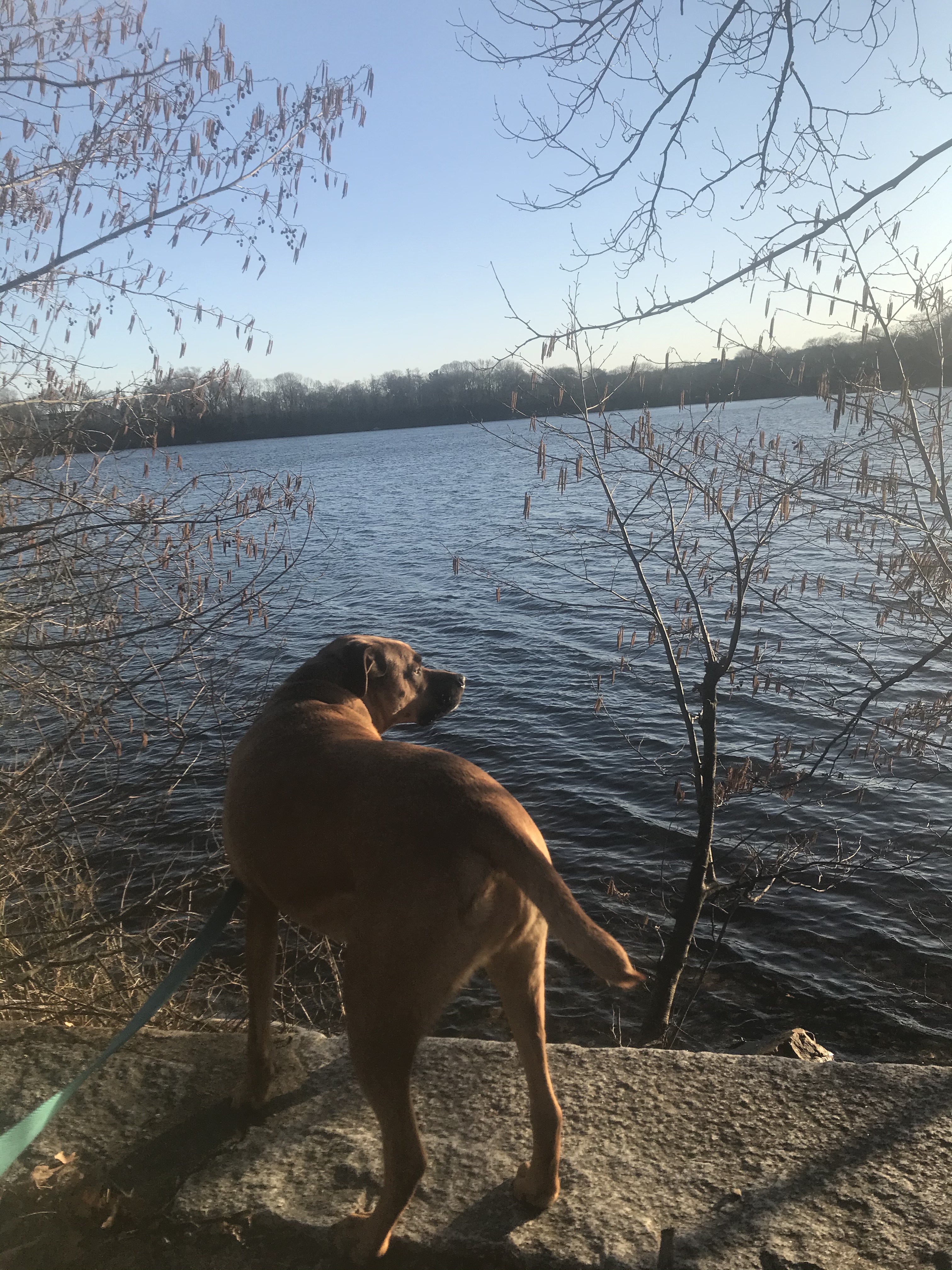 We had an unexpected Mystic River State Reservation. We were going to be in the area, and I was quite pleased to find the Reservation. We parked at the beach, and spent about 1.5 hours walking, and walking. We trotted along the River and found some trails here and there. The sun was beautifully setting throughout our walk, reflecting perfectly in the River. The Reservation is definitely an urban setting, however there were moments where the sounds of birds , and the peace of nature overtook the noises of the city. On our walk we located several swans, a stone arch bridge, and lots of perfect scents! There were many dogs off leash but did our best to stay in the quieter areas of the Reservation. We are still in the brown season of Massachusetts but I was pleased to see small glimpses of green. Although I did not have my camera with me on this Adventure, still decided to share. Glad to enjoy an evening walk with my girl (Rating: 3).