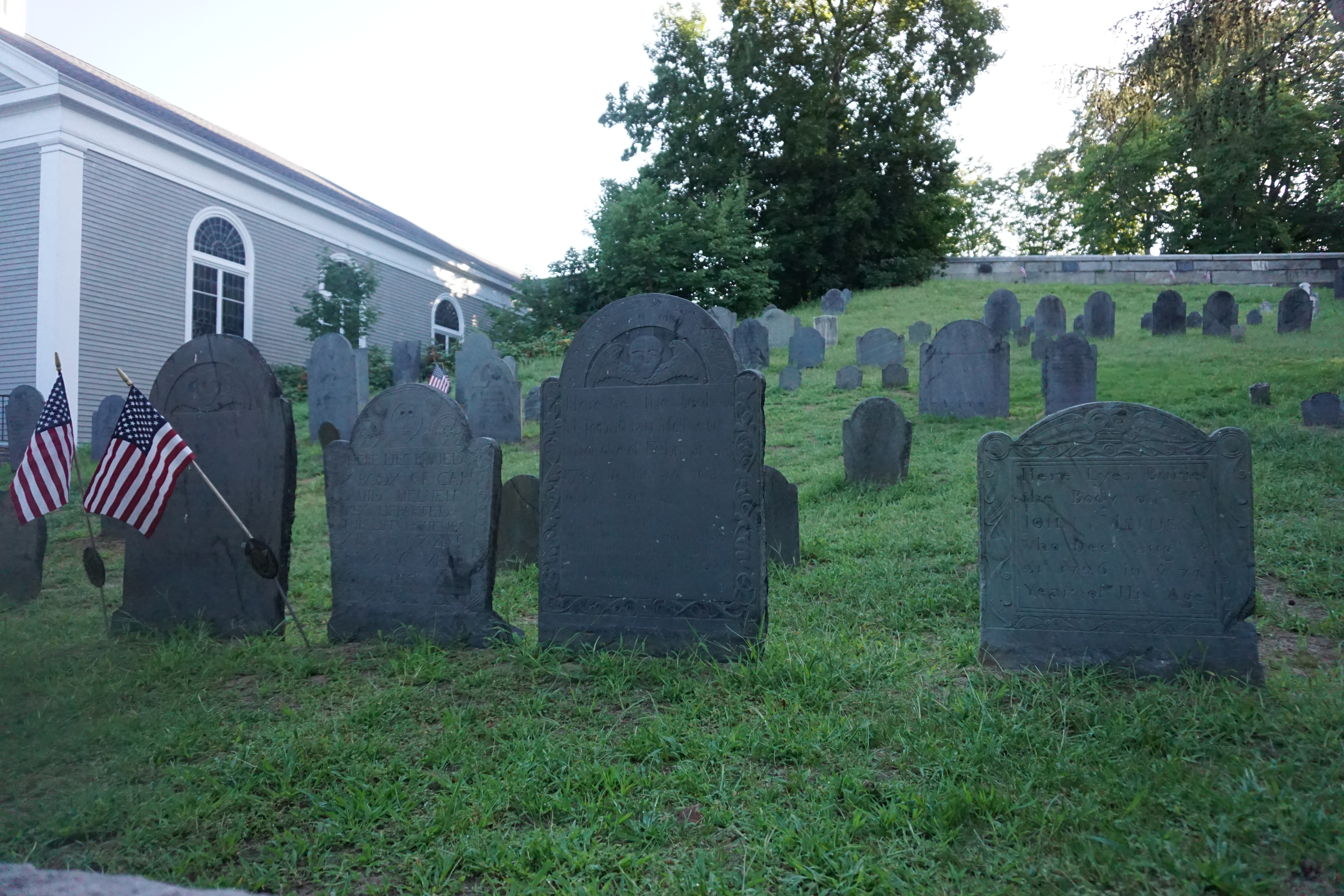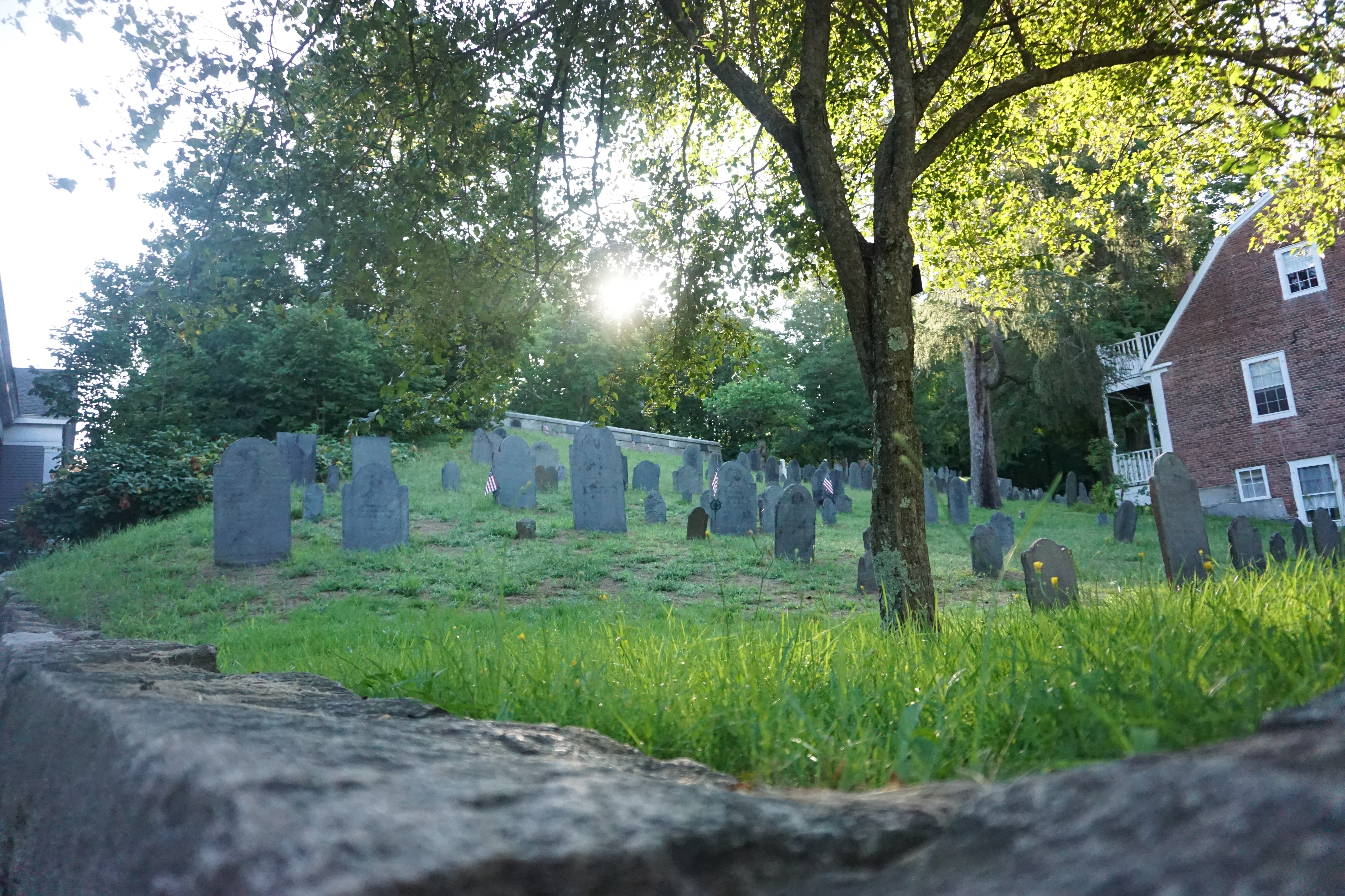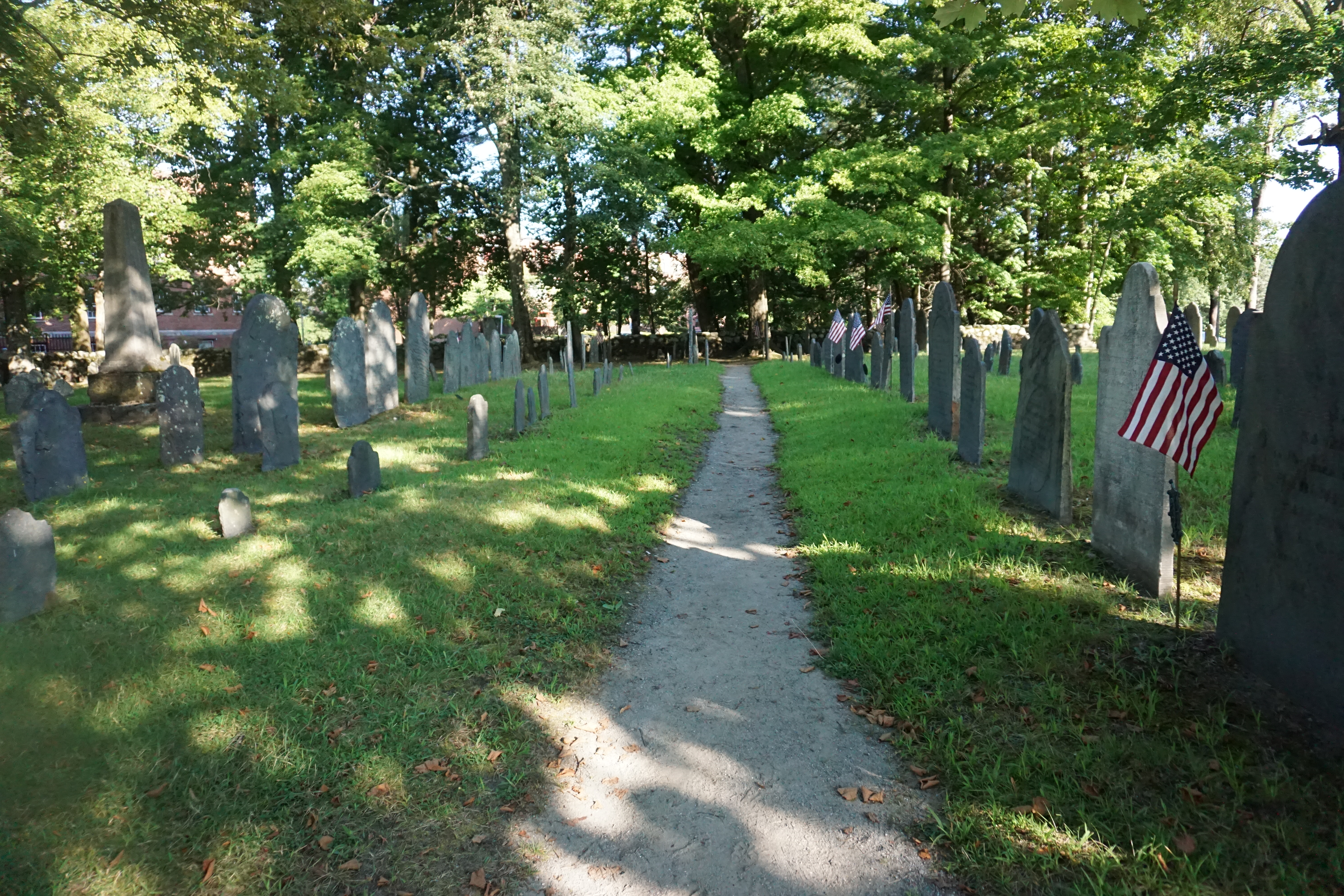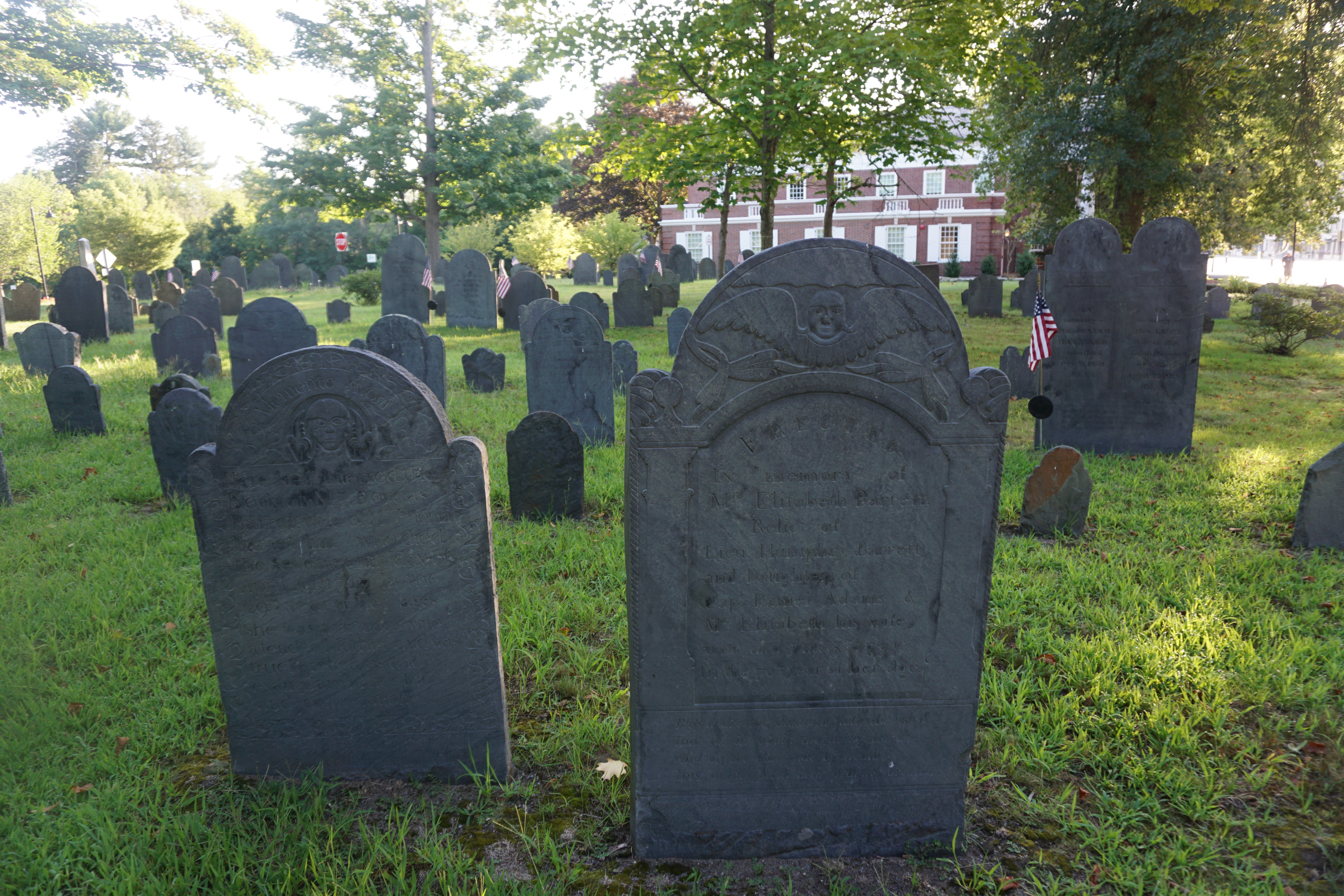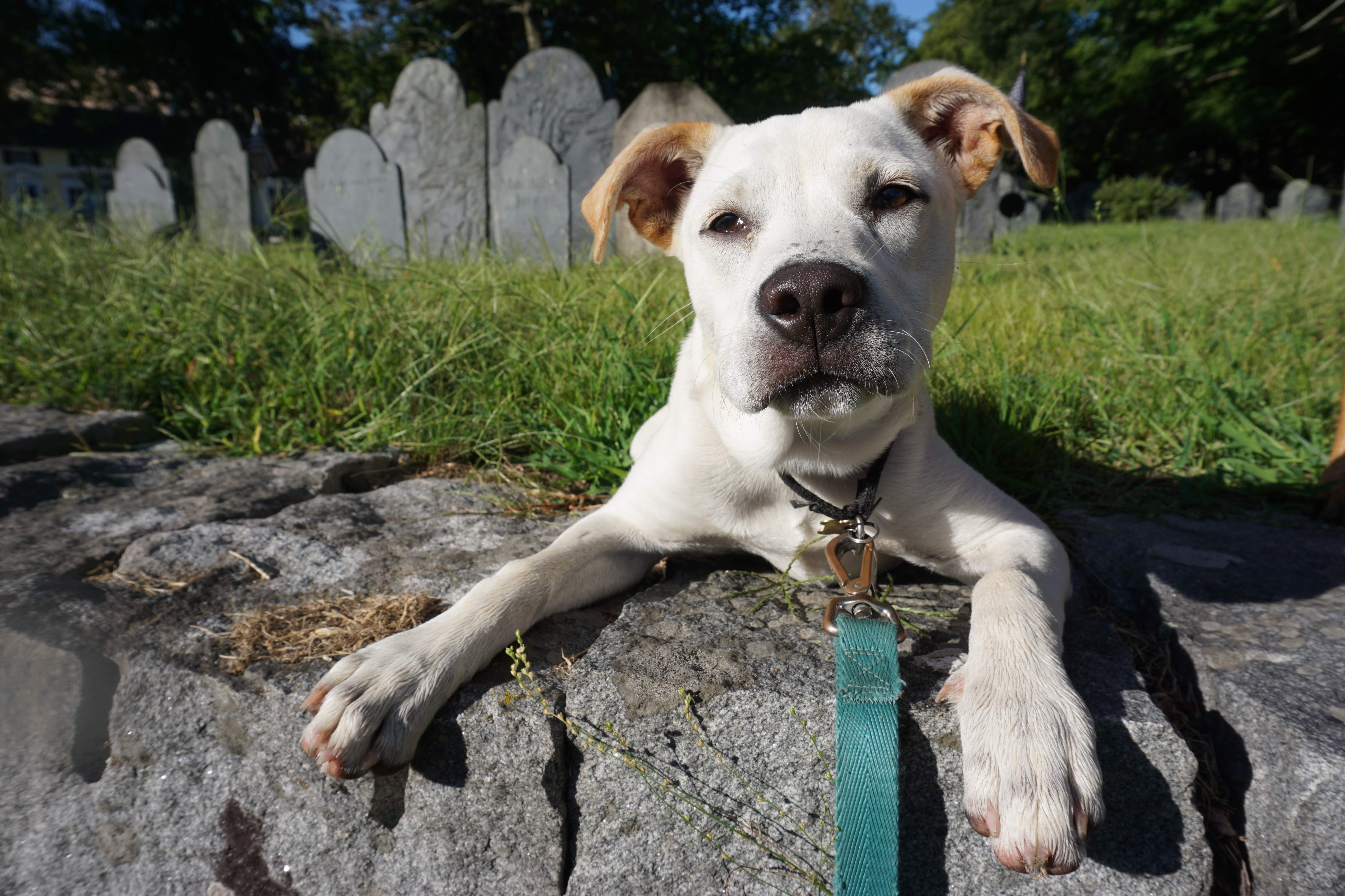 We had a history filled Adventure to Concord, Massachusetts. During our visit we explored a variety of locations including: Wrights Tavern, Monument Square, and the Old Burial Ground. We arrived bright and early, preventing a crowded scene. We walked down the main street stopping at various spots and enjoying the architecture of the buildings. Wilma was especially pleased that it was a cooler morning, not being too enthused with the recent heat. Both Wilma and Gus trotted along, and posed perfectly. My favorite landmark was the Old Burial Ground and enjoyed searching for various highlights along the way. So glad we could wander around Concord today (This blog will not be rated).