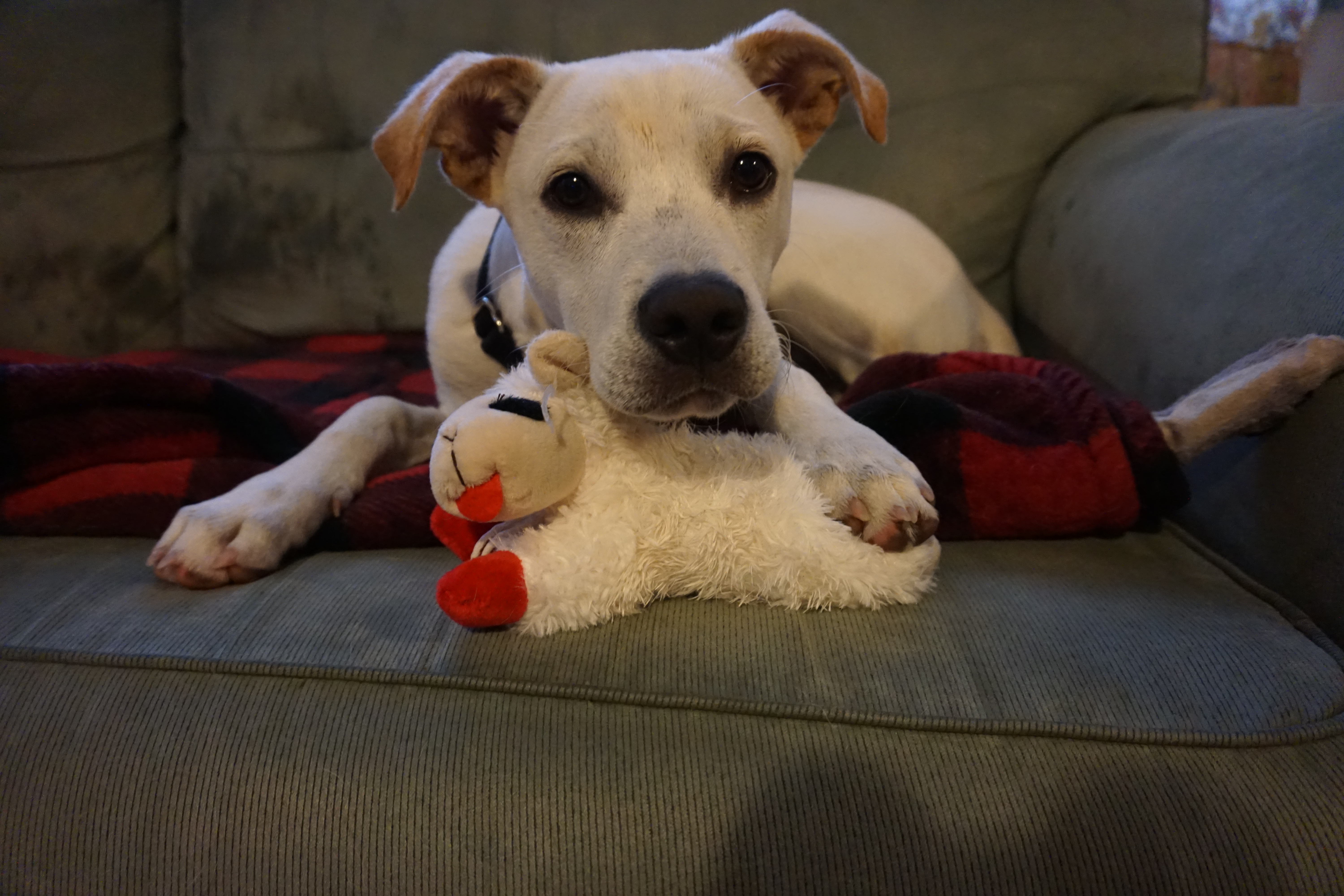 Today Wilma, Gus, and I had a quiet and dark day at home due to Hurricane Henri, although thankfully we were able to sneak out for a morning walk. We actually did not end up getting much of Henri, but I planned for a day at home with new bones, new toys, and Gus was lucky to have a new toy from a kind and giving family friend. I was quite proud that Gus did so well on this inside day, as we are an outside-as-much-as-possible family. Gus is not a high energy puppy but I would definitely consider him busy on a “normal” day however he seemed to know that this dark day was perfect for resting. Wilma enjoyed the day of relaxation, but also appreciated the new squeaky toys. She also loved some extra belly rubs. I enjoyed cuddling with them on the couch and relaxing, in between some catching up around the house.