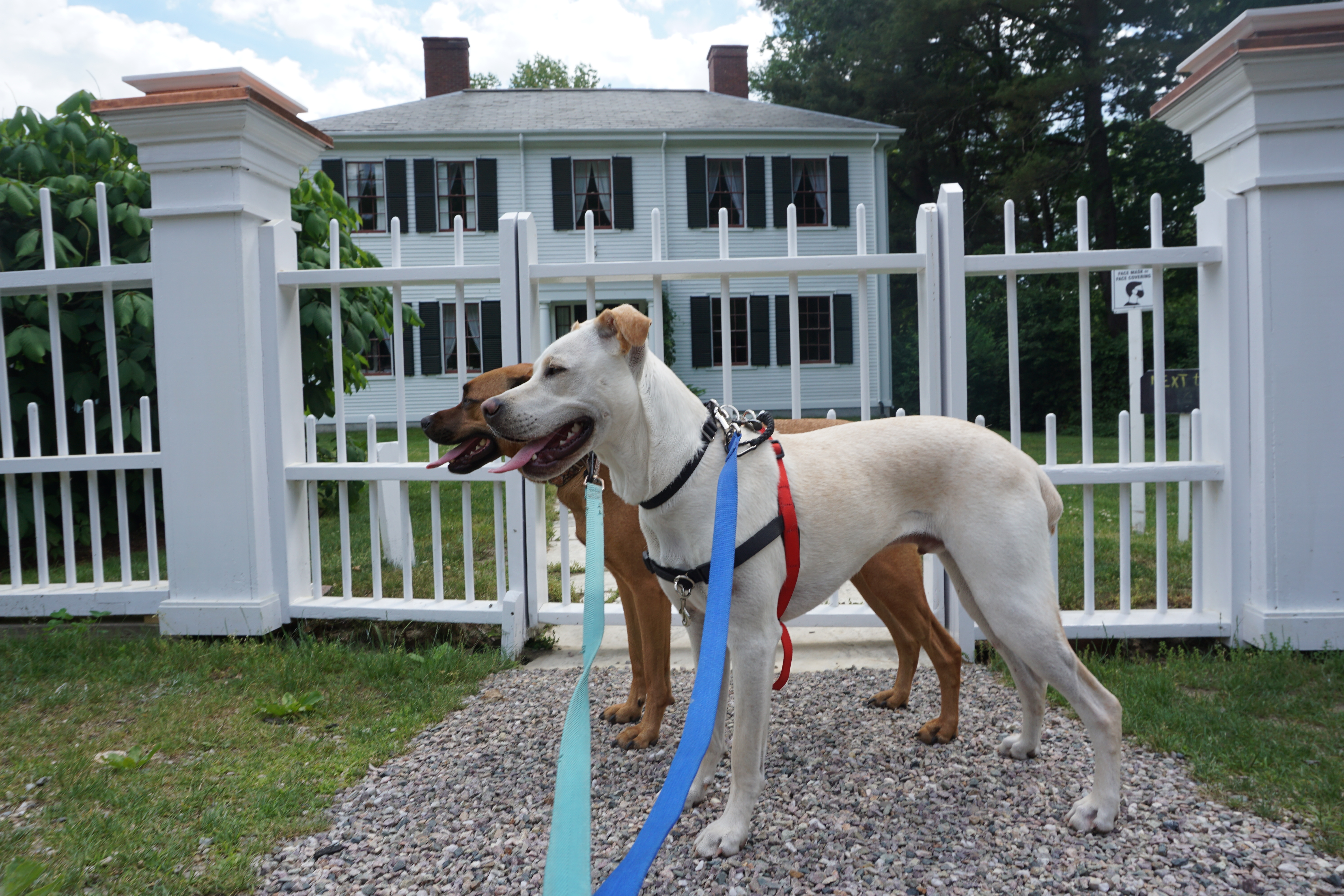 The house was gorgeous, a lovely white fence lining the property. The garden was simple but had some blooming florals. The pups were not up for a formal pose but still were adorable in their synchronized shot. Glad to formally visit the Emerson home today (this blog will not be rated)