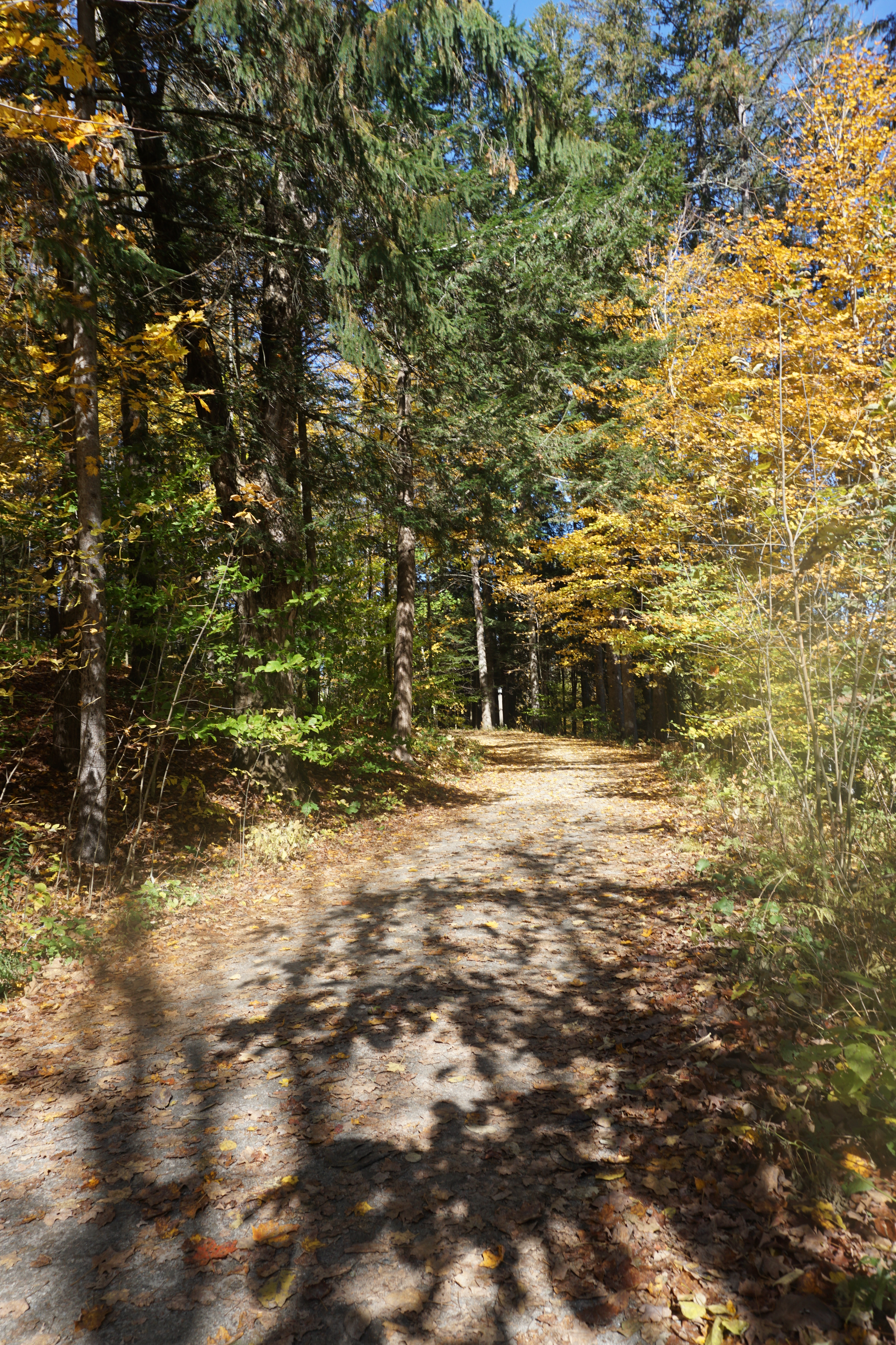 We had a marvelous Adventure to Marsh Billings Rockefeller Park on this gorgeous Fall Day. I was so excited to return to Marsh Billings, one of my favorite New England parks, especially eager to see the colors of Autumn. On our Adventure today we mostly explored the trails, including: the Mountain Trail, Poque Loop, and endless side trails. There were many others on the trail, and all dogs we saw, except one were on leash. The colors of the leaves were mostly yellow and orange hues, and the brilliant sun was often shining through the trees. We walked and walked, enjoying the smells and signs of Fall. We spent about four hours hiking and exploring. Although I included a couple photos from the general park area, the majority of the photographs were taken on the trail system. It was an absolutely perfect day and will forever be a special one. So glad we had a day full of exercise, on this perfect Fall Day (Rating: 4.5)