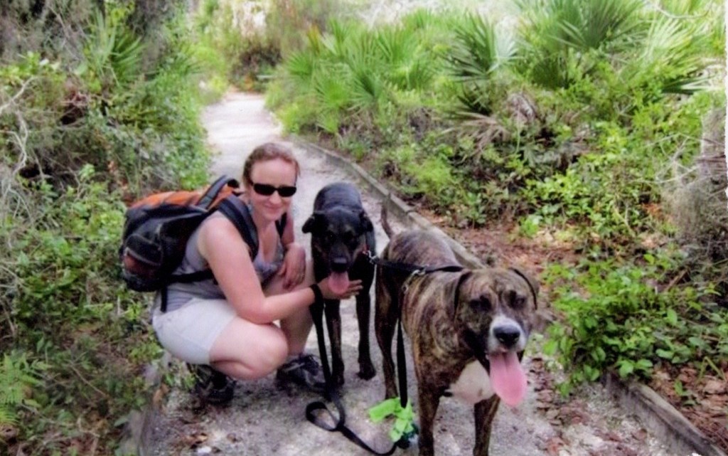 Today’s photo is a photo of me and the boys – Shadow and Buster back in Tampa on a July hike. This is one of my favorite photographs of myself with these two amazing pups, even if the quality is not perfection. We had so many special times, and adventures. Although I wish I had a crew of four, I am thankful to have endless photographs to remember the fun we had. Here they are: