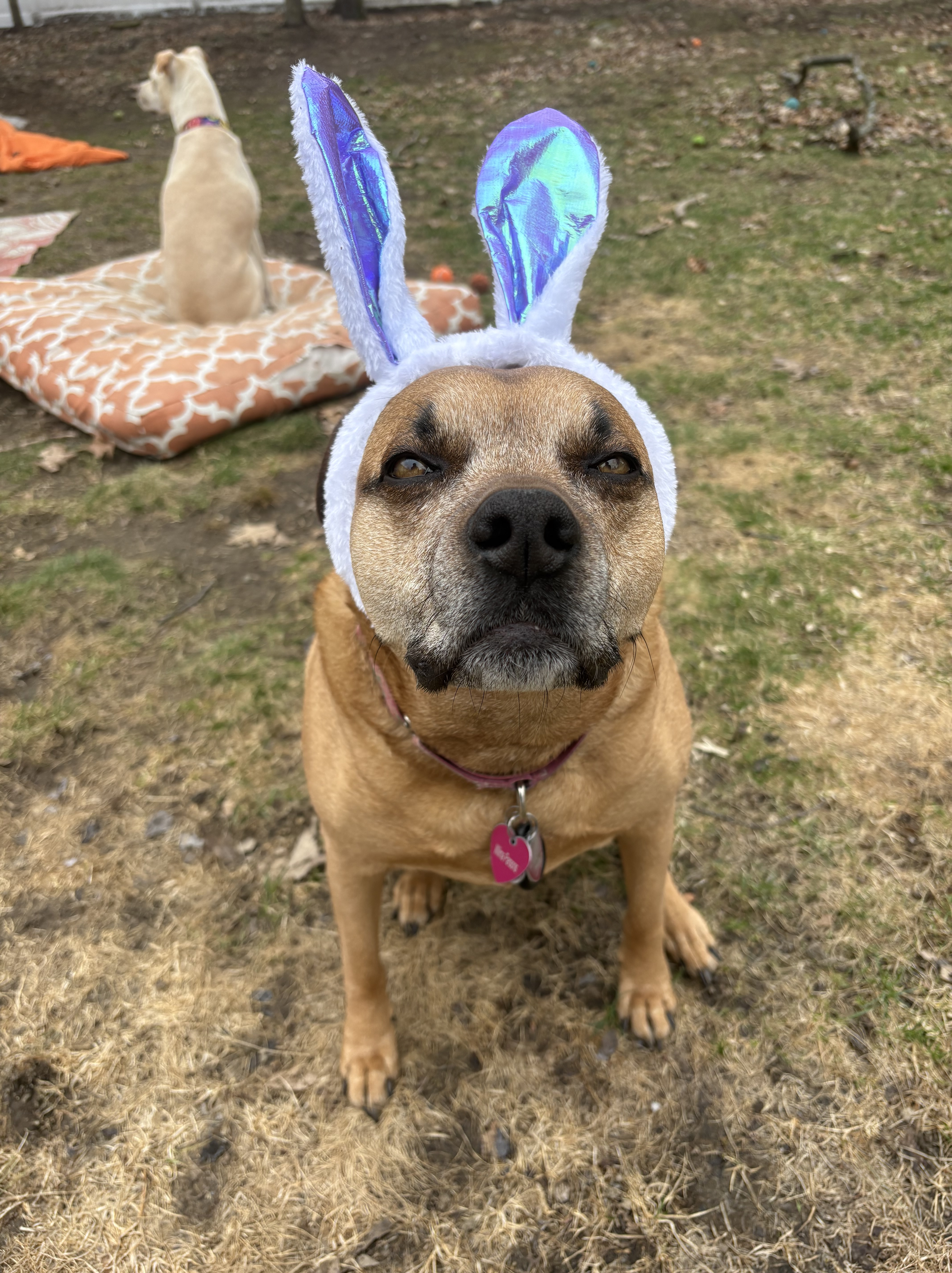Happy Easter from Wilma, Gus, and I! we celebrate with cookies, cake, and an evening with my parents! I took a couple pictures of them in their bunny ears and got a quick one of Gus before he slapped it right off! Love these funny little additions to holidays! Hope everyone had a good Easter with family and friends!