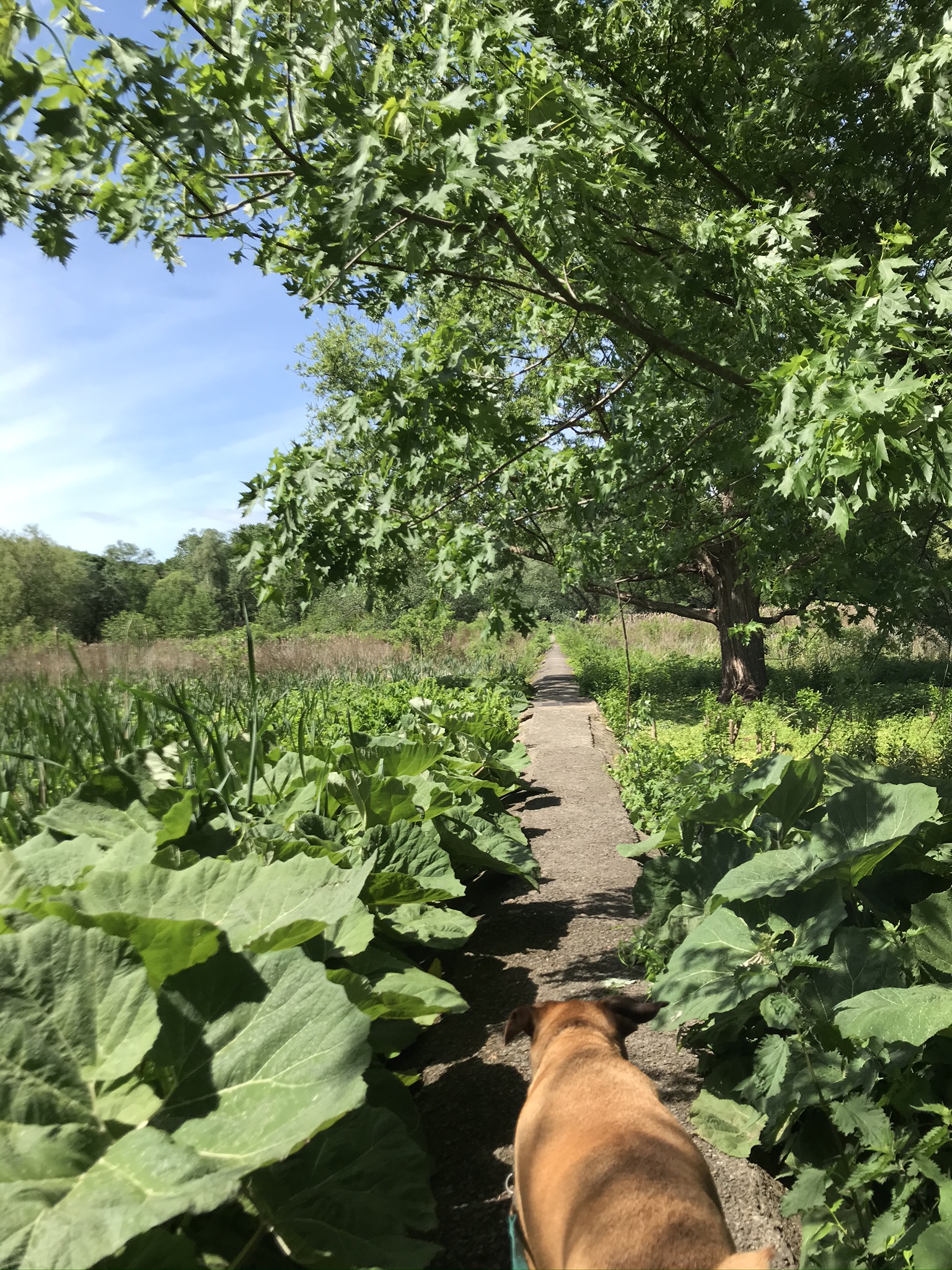 Wilma and I had a lovely Adventure to the Moffatt-Ladd House. I decided to take Wilma on a private adventure today, and we were quite pleased that the weather was just right. Wilma, Gus, and I enjoyed a two hour family walk this morning, and have been mostly appreciating our “normal”, local locations this week. However today I decided to return to the Moffatt-Ladd House. Wilma and I had actually tried to visit one other time but the hours were changed and they were closed, so today we returned for a second attempt. Since parking was not available, and because I wanted to get a walk in on the way we parked a little distance away from the House. We were pleased to arrive to find the doors open. The property was very quiet with few other visitors in sight. I am assuming dogs are not allowed inside the buildings, although did not formally inquire, so we just explore the grounds. The gardens were very small, but quite beautiful with variety of vibrant colors, and some unusual flowers. The garden was highlighted by lovely trellis-like arches which really added quite the touch. It did not take us long to finish exploring but we took our time, myself enjoying taking some photographs while Wilma enjoyed lounging and rolling in the perfect green grass. So glad we could visit the dog-friendly garden at the Moffatt-Ladd House today (This blog will not be rated).