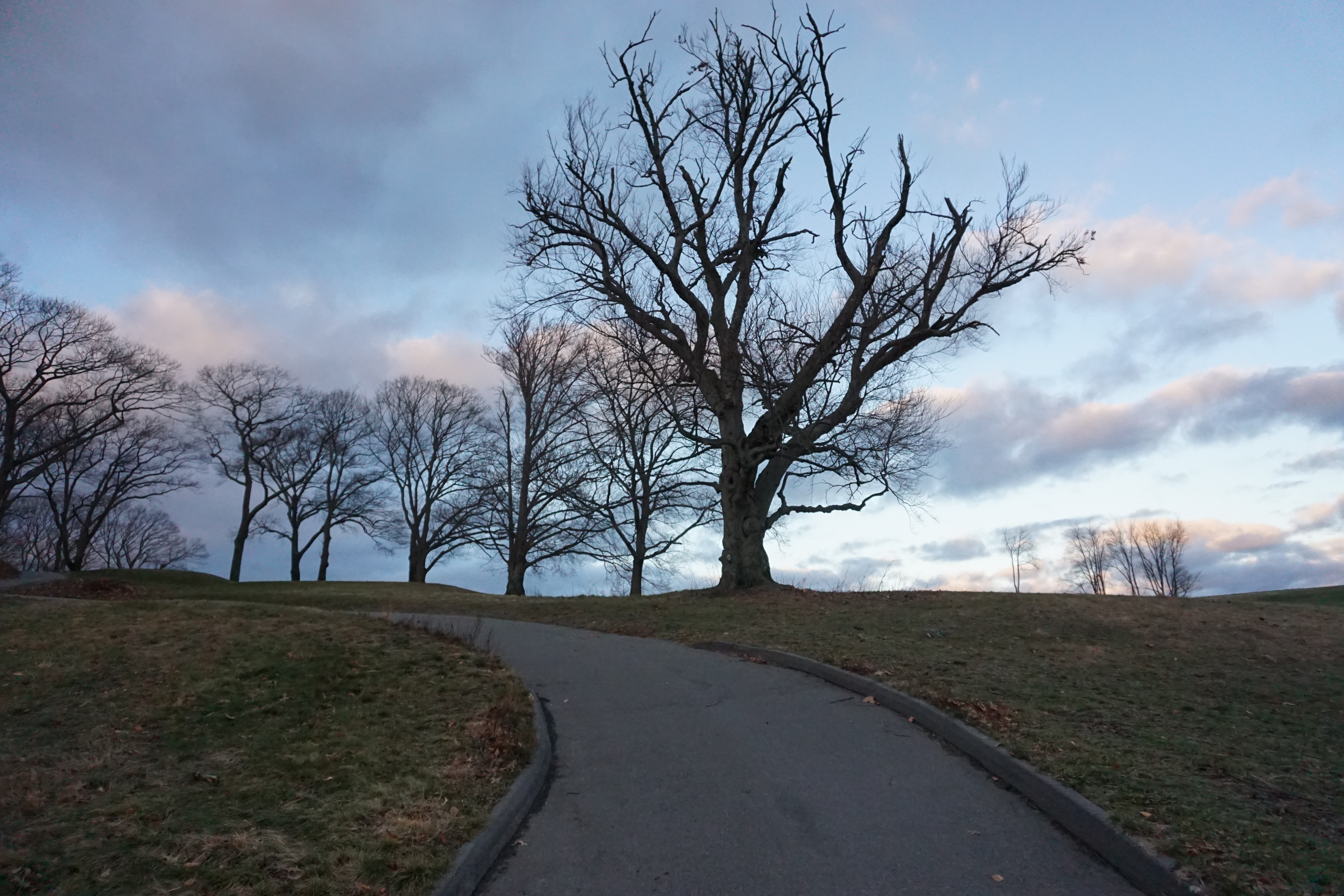 After spending time at Schoolmaster Hill we continued to explore the Park, including: The 99 Steps/Ellicott Arch, and Scarboro Hill with the “vista” lookout. We spent about two and a half hours walking on the paved trails, and trying to see what we could find. I absolutely loved watching the sun setting the clouds were framed by all colors, and sunlight creating a spectacular scene. I wish this beauty was easier to capture on camera. As you may expect the sunset and ruins were my favorite parts of today’s Adventure, while Wilma loved walking along the stone fences, jumping on the rocks, and the expected walking and sniffing. Although I had heard of Franklin Park I never thought of exploring it until our accidental find. So glad we could Adventure to Franklin Park today (Rating: 3.5)