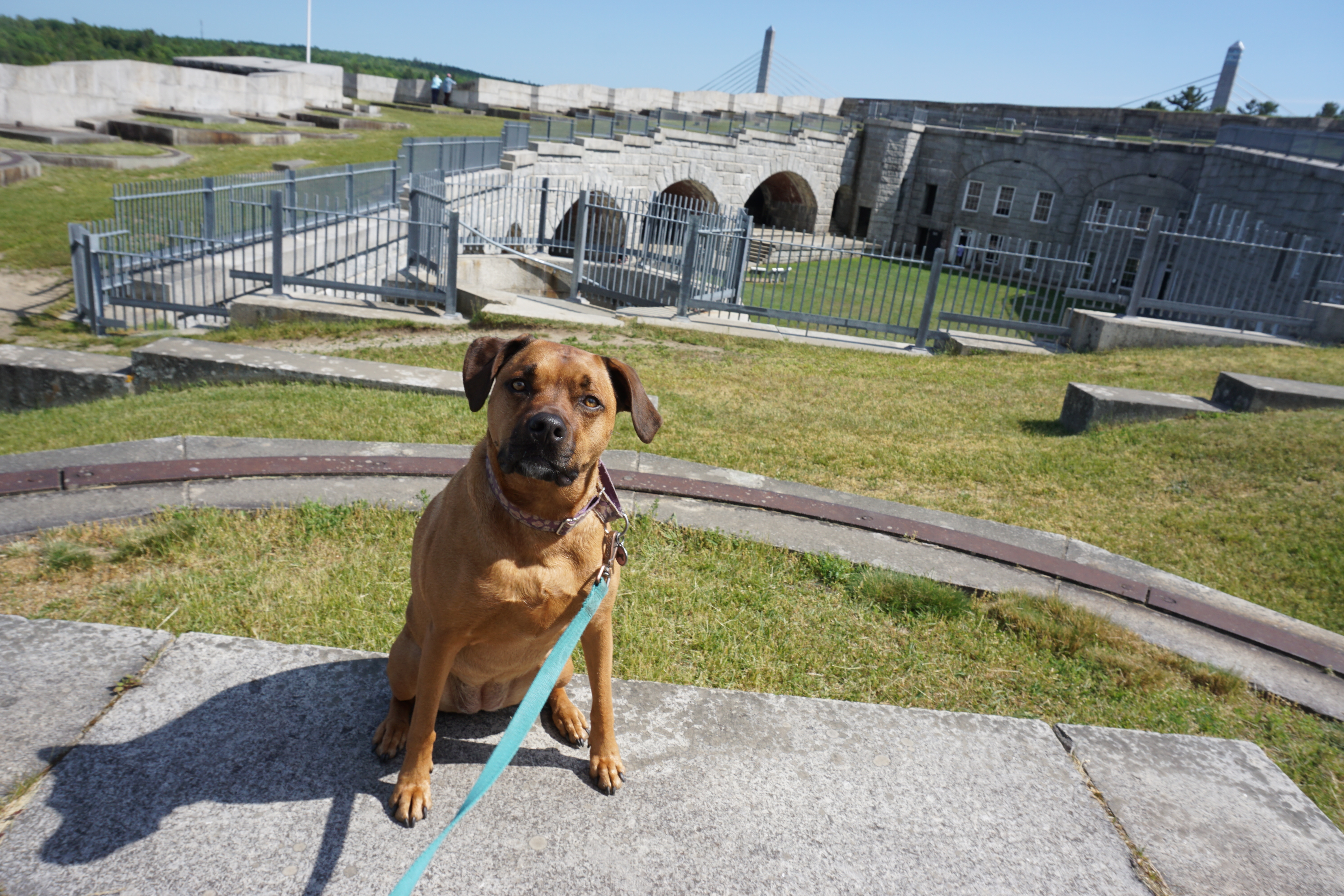 We had a spectacular adventure to the Fort Knox Historic Site. As you may know if you have been following my blogs this weekend my camera was not charged properly so I relied on my cell phone for the majority of photographs. Although I am far from a history buff I have grown to really enjoy visiting, and photographing forts. Fort Knox definitely did not disappoint! I actually first discovered Fort Knox driving down the grand Penobscot Narrows Bridge, an amazing site on the shores of the River. We arrived at Fort Knox after a day of hiking at Acadia and I was quite excited to check out the sites. Wilma and I were both tired from our hiking but we carried on to explore. We made sure to explore all the crannies, tunnels, staircases, and everything we could find. I could not believe how much fun it was locating these different areas within the Fort. It is usual that you can find a Fort to explore, especially one that is dog friendly. The views of the Penobscot River, and Bridge were lovely, the sky bright blue. Wilma loved lounging in the grass and rolling over for those who may give her a belly rub, she is quite the charmer!! We could not have asked for a better day to visit the Fort Knox Historic Site. It really made me feel like a kid again, and I think may have been my favorite Fort yet. So glad we could visit the Fort Knox Historic Site (Rating: 5).