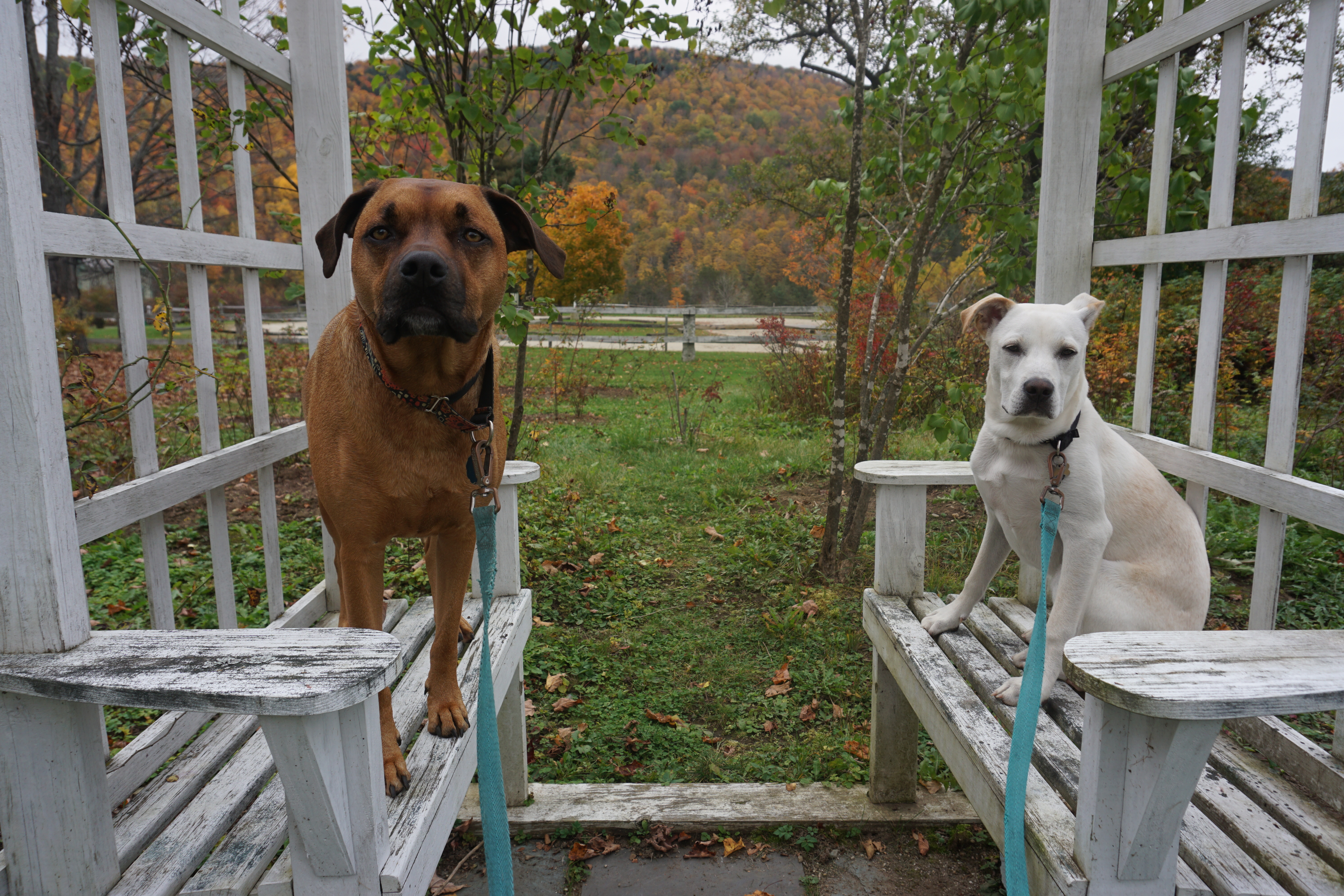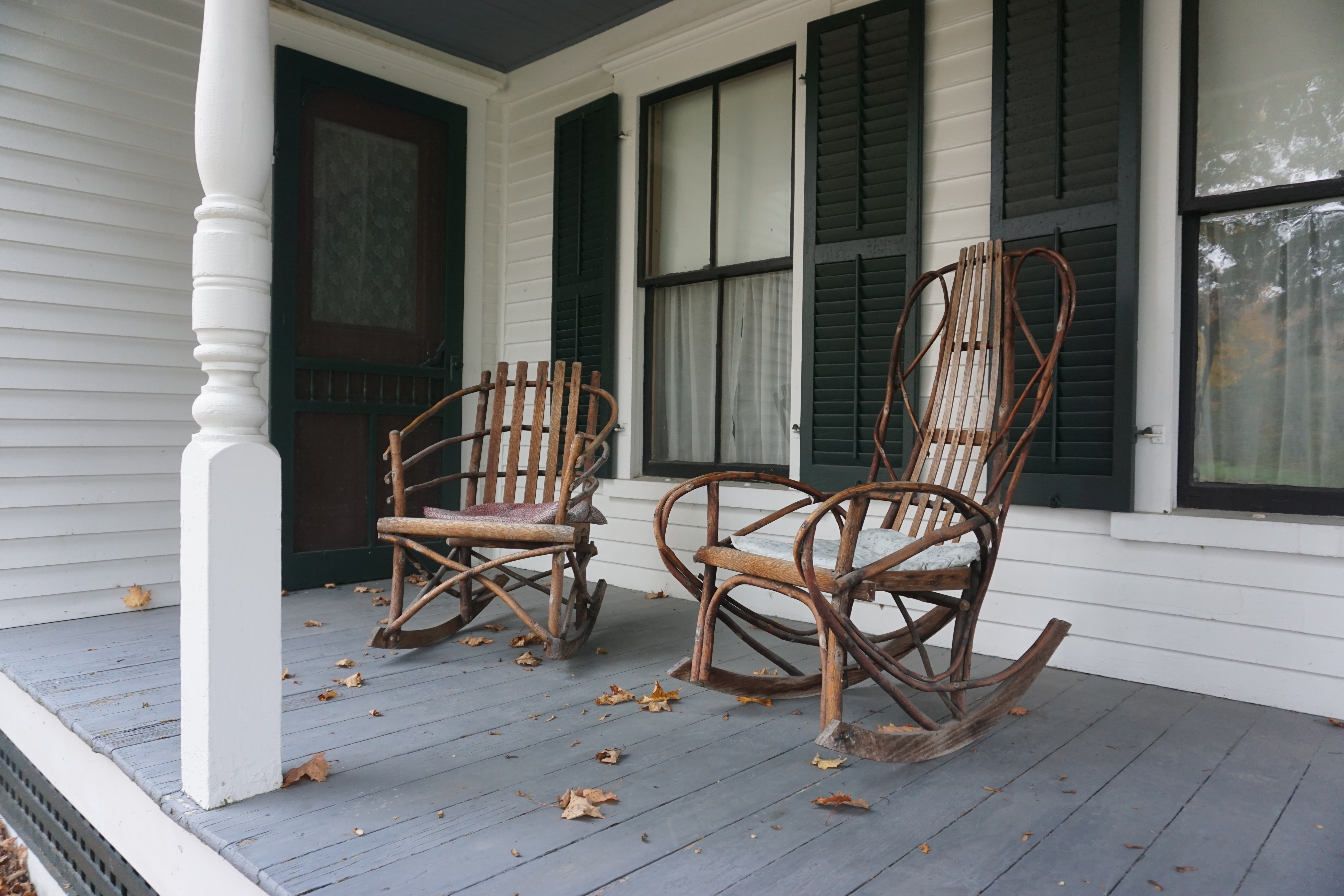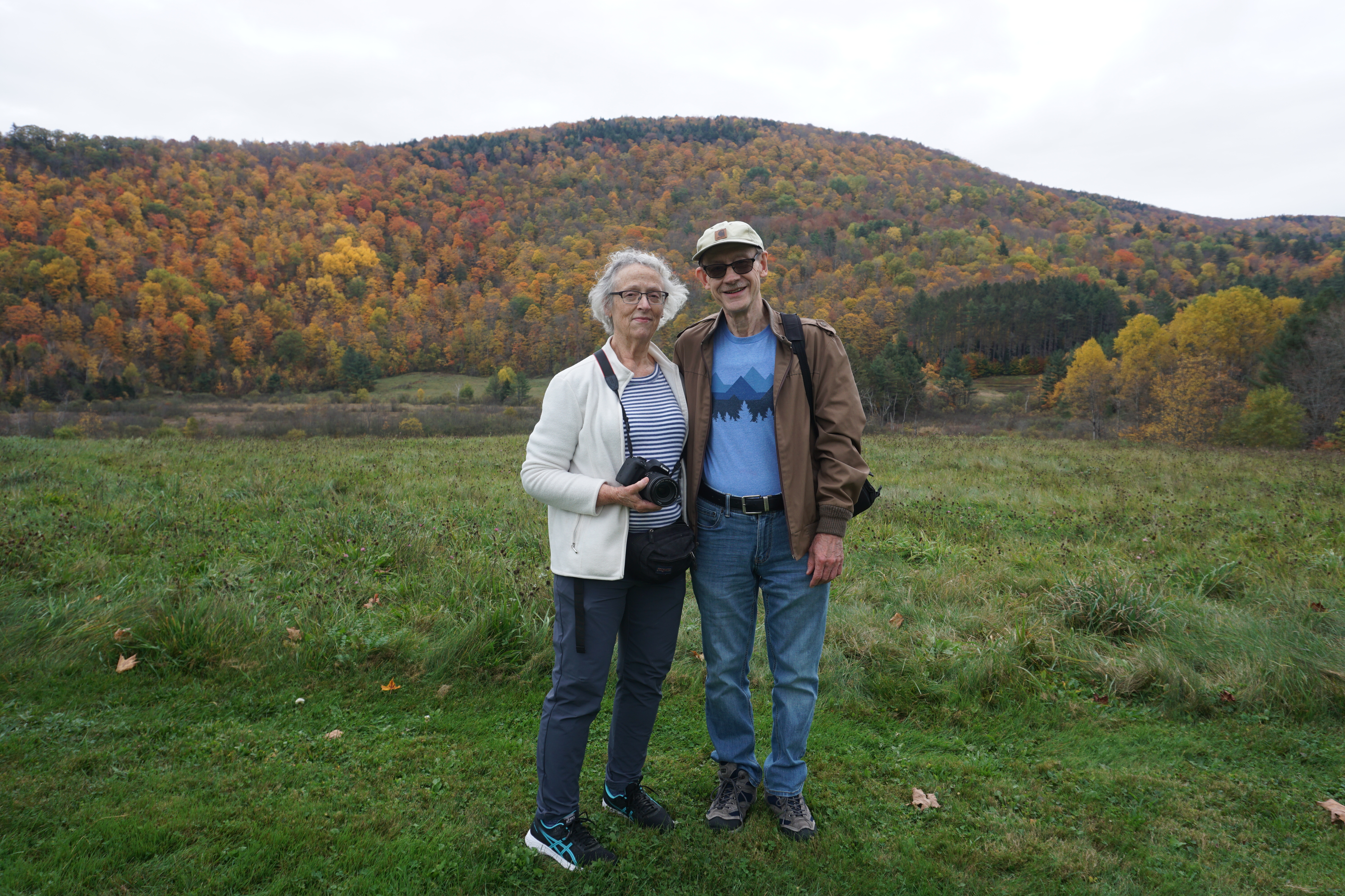 We had an enjoyable Adventure to the Calvin Coolidge Historic Site. I was excited that my parents could join us to visit this unique historic site. Upon entry we drove up a small hill to park, finding gorgeous views of the mountains. This was one of my favorite parts of our visit, the Fall beauty upon us. Unfortunately it was a dark day but we did our best to capture this lovely location. From there we obtained our passes and began wandering the property. We checked out the various buildings, my Dad being our tour guide and historian – Thanks Dad! We found some rocking chairs to sit and of course I located endless locations for Wilma and Gus to pose. Our last stop on the Site was the graveyard, which included many stones from the Coolidge family. The cemetery was lovely on a hill with the mountain colors in the background. So glad we could visit the Calving Coolidge State Historic Site, with perfect company (Rating: This blog will not be rated).