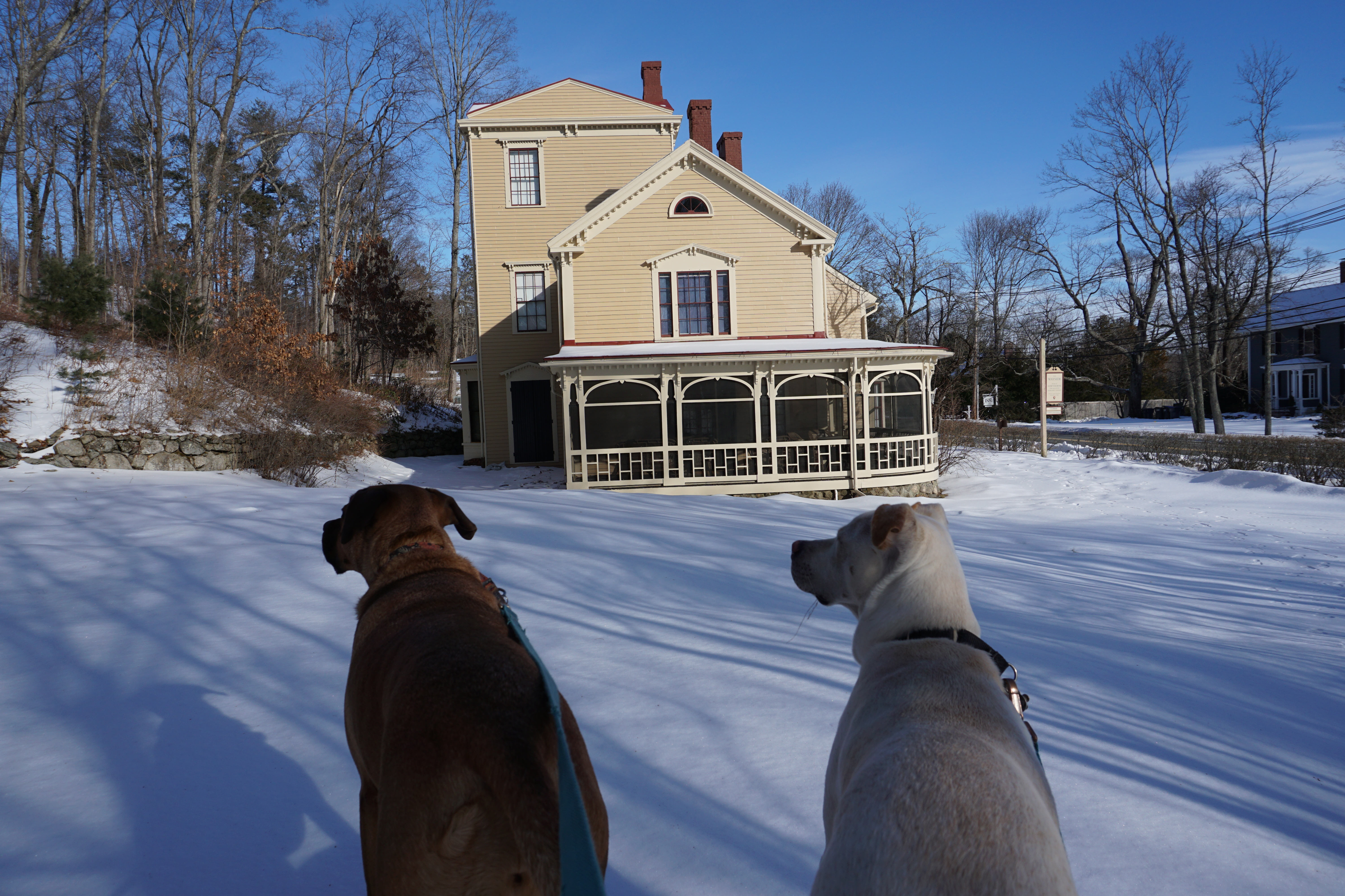 We had a simple Adventure to the Wayside Home after a three hour walk at one of our favorite local parks. We parked across the street, at the designated parking, and headed over to the home. The Home indicated it was closed for the season. Although I did not research it I am sure dogs are not allowed indoors, so our visit would not have been too much different in-season. We explored the grounds as much as possible, really not much to see. So glad we could take some shots at the Wayside Home today (This blog will not be rated).