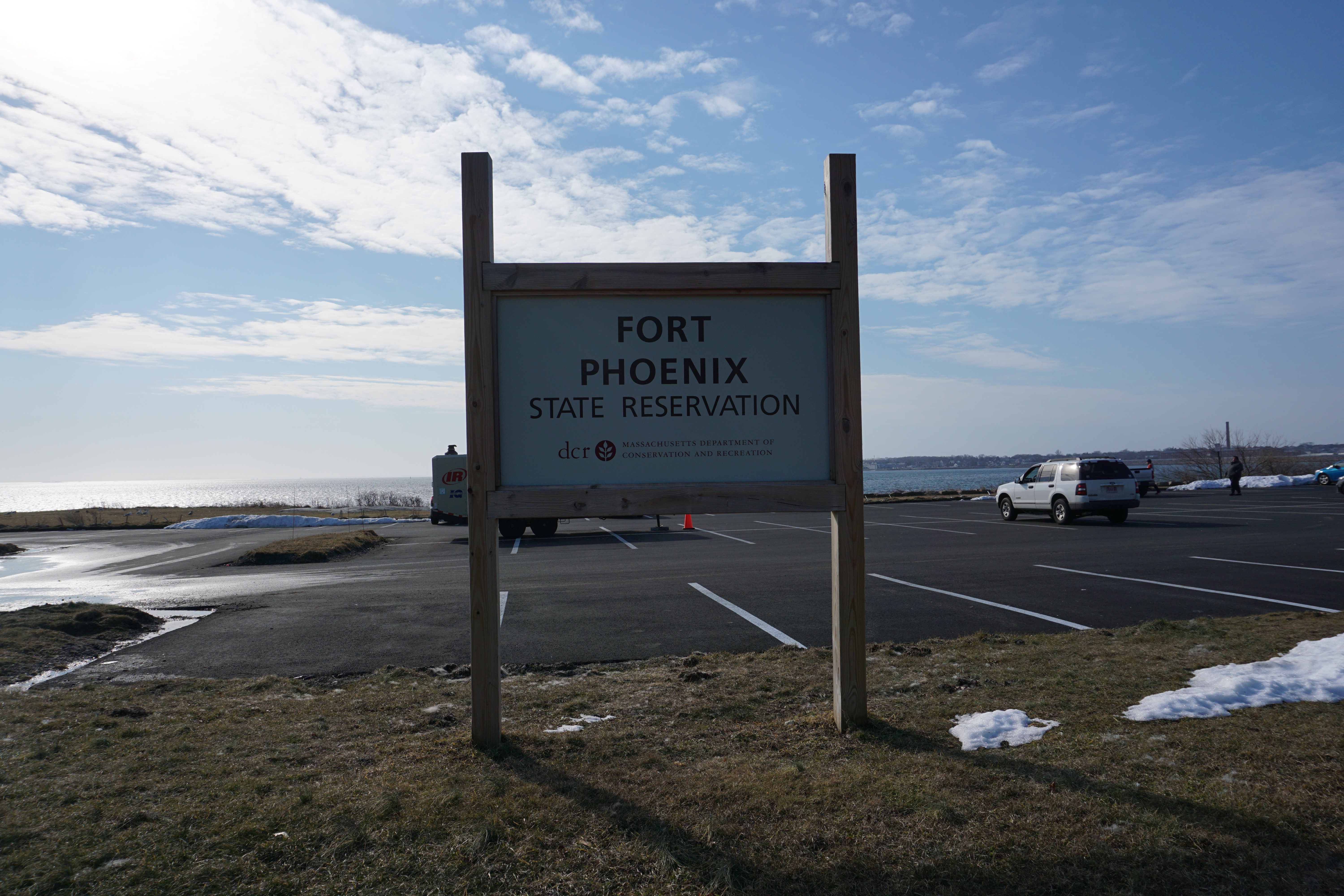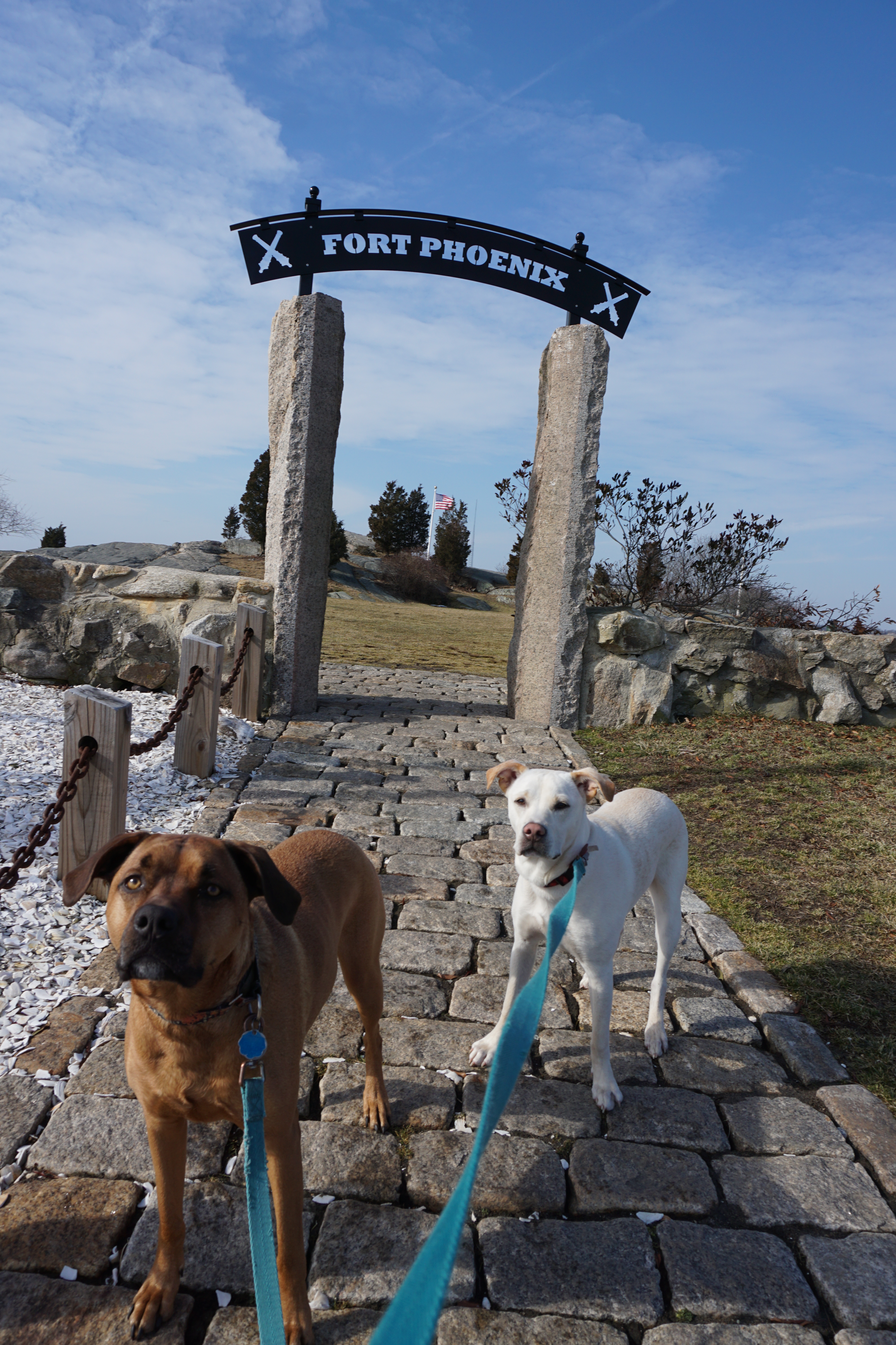 Today Wilma Gus, and I Adventured to Fort Pheonix State Reservation in Fairhaven, Massachusetts. Fort Pheonix State Reservation includes 28 acres next to the remnants of Fort Pheonix, dating back to the Revolutionary War. The Reservation also includes a hurricane barrier with a walking trail. The park is popular for swimming, walking, and history seekers.