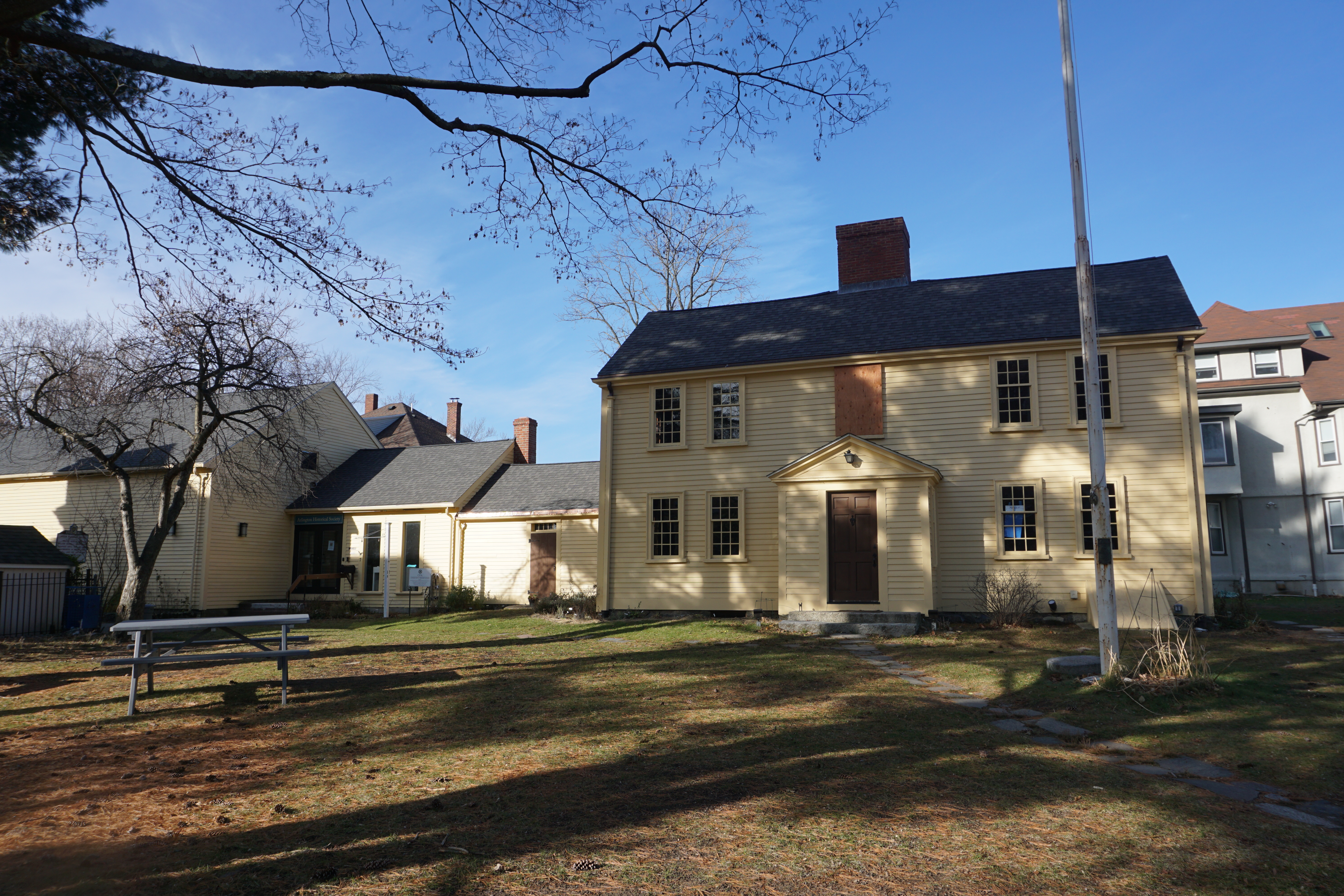 We had a simple Adventure to the Jason Russell House after a weekend of local walks. I guess I cheated a little on this blog, as dogs of course are only allowed on the grounds, but I still enjoy visiting historic homes in the area. The home was located on a busy corner of Arlington, but we were able to find parking next door after circling around the neighborhood once. We hopped out and wandered around the grounds, although really not much to see form the outdoors. It is sad to see the colors fading more and more as we head into the winter season. However, glad we could find a new historic home to visit and photograph (this blog will not be rated).