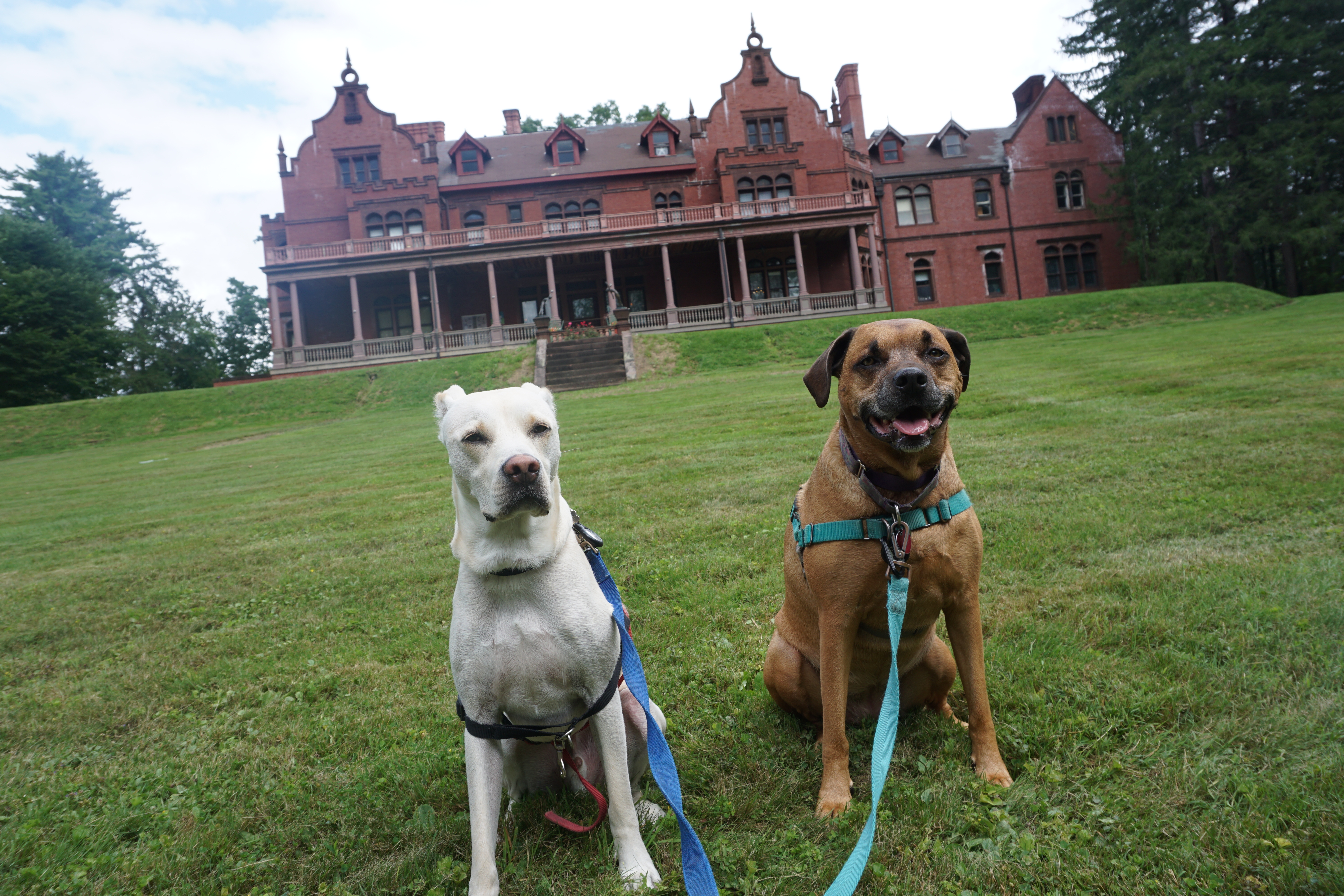 We had a brick-filled Adventure to Ventfort Hall. I had found Ventfort Hall when I was looking up mansions, as I love exploring the grounds and seeing these diverse structures. I confirmed that dogs were allowed on the grounds, so we decided to make this museum one of our stops. There were few exterior frills to the Mansion, but it was quite large and lovely. In writing this blog I read that there were some repairs needed, and I did observe that it was not in tip-top shape. However, we wandered around the mansion and made sure to find the color, and little features around the grounds. So glad we could check out the grounds of the Ventfort Hall Mansion yesterday (this blog will not be rated).