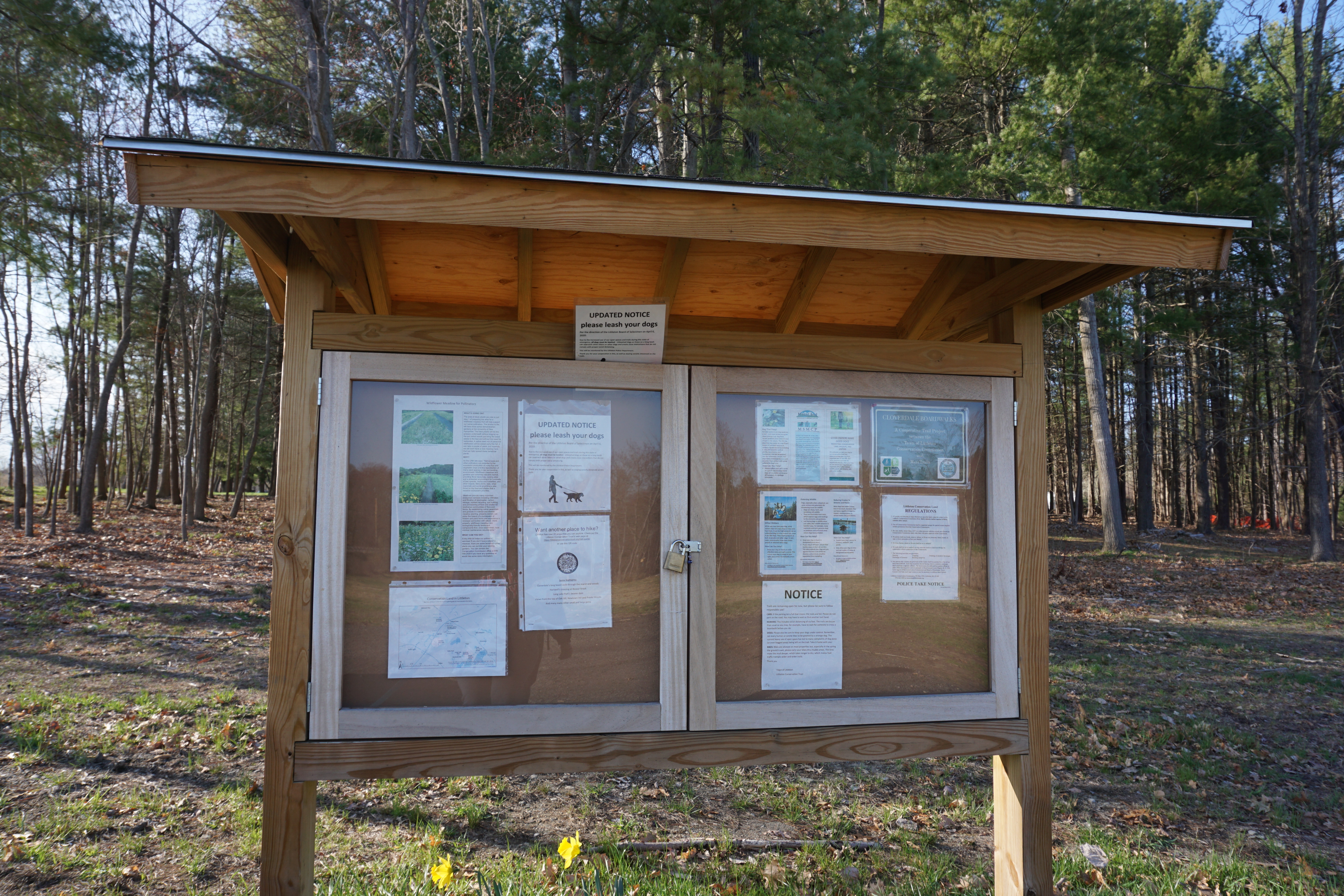 Today Wilma, My Mom, and I Adventured to the Cloverdale Conservation Land in Littleton, Massachusetts. Cloverdale Conservation Land is a small property of just 20 acres. The property includes wooded terrain, a boardwalk through the wetlands, and an open pasture. The main loop is less then one mile in length.