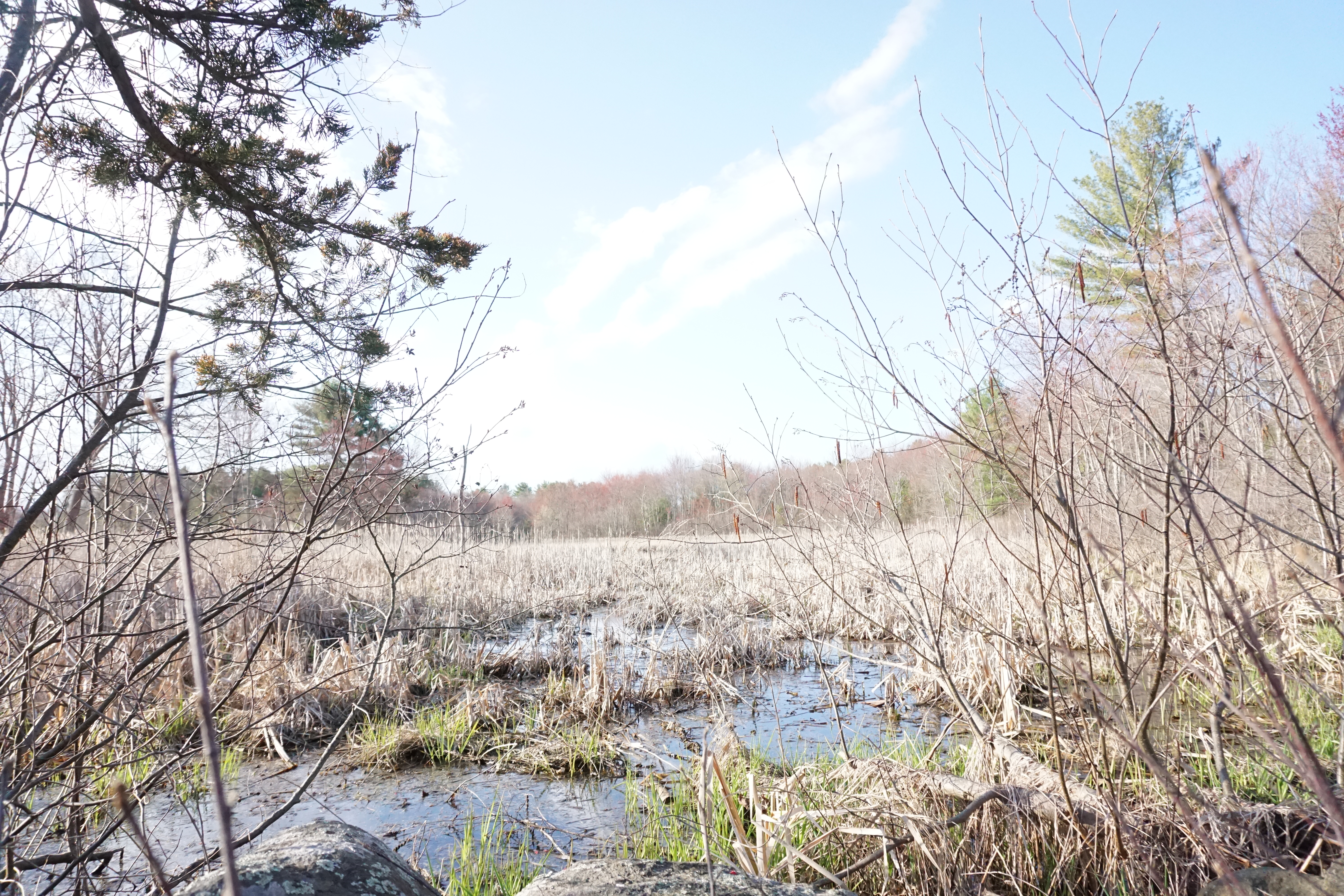 We had a peaceful Adventure to the Cloverdale Conservation Land, a property that I have been curious about for some time. We arrived to find ourselves the sole visitors to the property. We began the walk down the boardwalk, headed into the woods, and then looped around the wetlands before returning to the car. The walk was very short, but a perfect time to catch up, observe nature, and appreciate signs of spring. I loved the boardwalk, and several additional wooden bridges. Throughout our walk we spotted cat tails, horse tails, daffodils and what we guessed may be swamp marigolds. We even noticed two otters swimming through the wetlands, and a gorgeous blue bird feasting at one of the feeders. So much nature in just a very short walk.