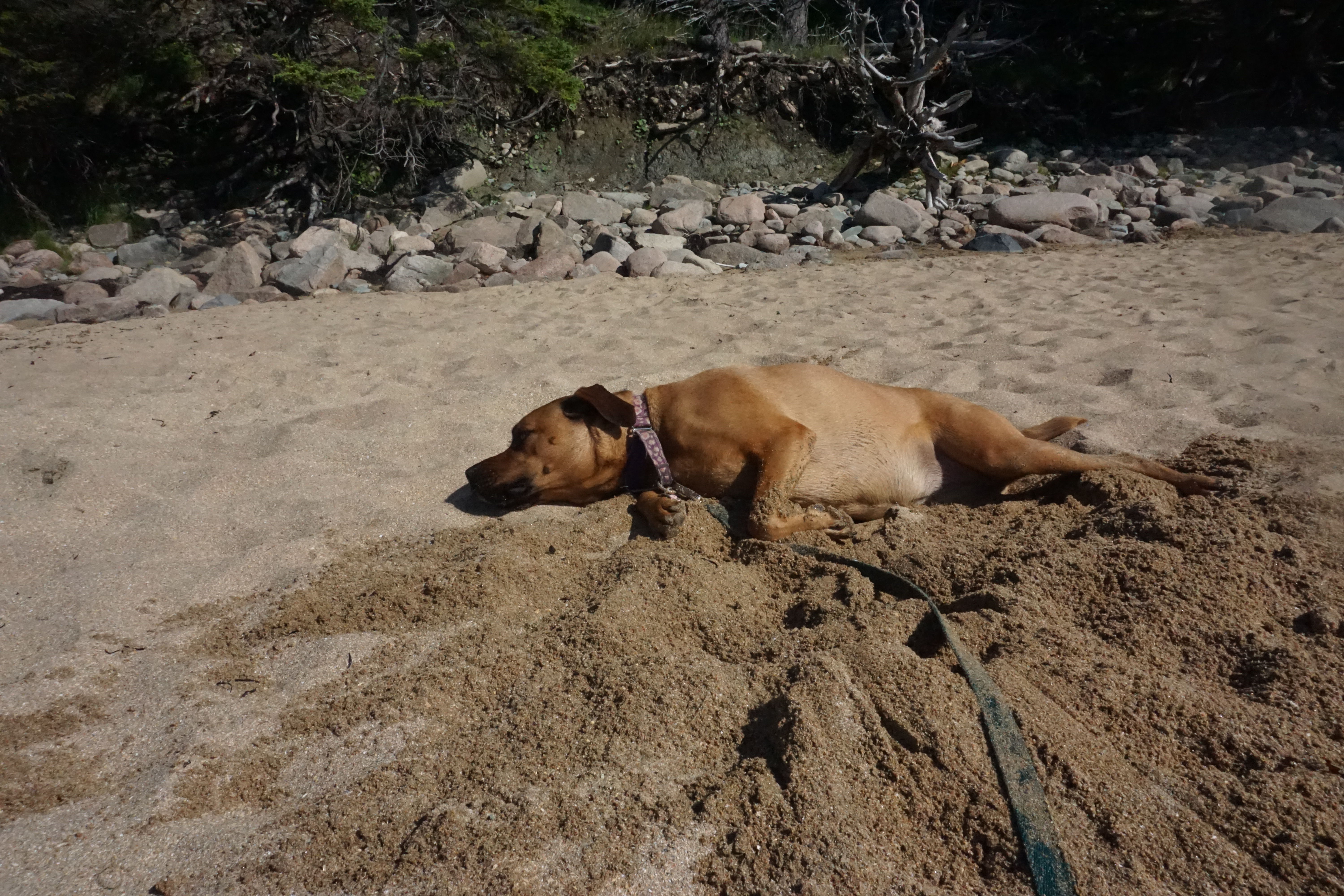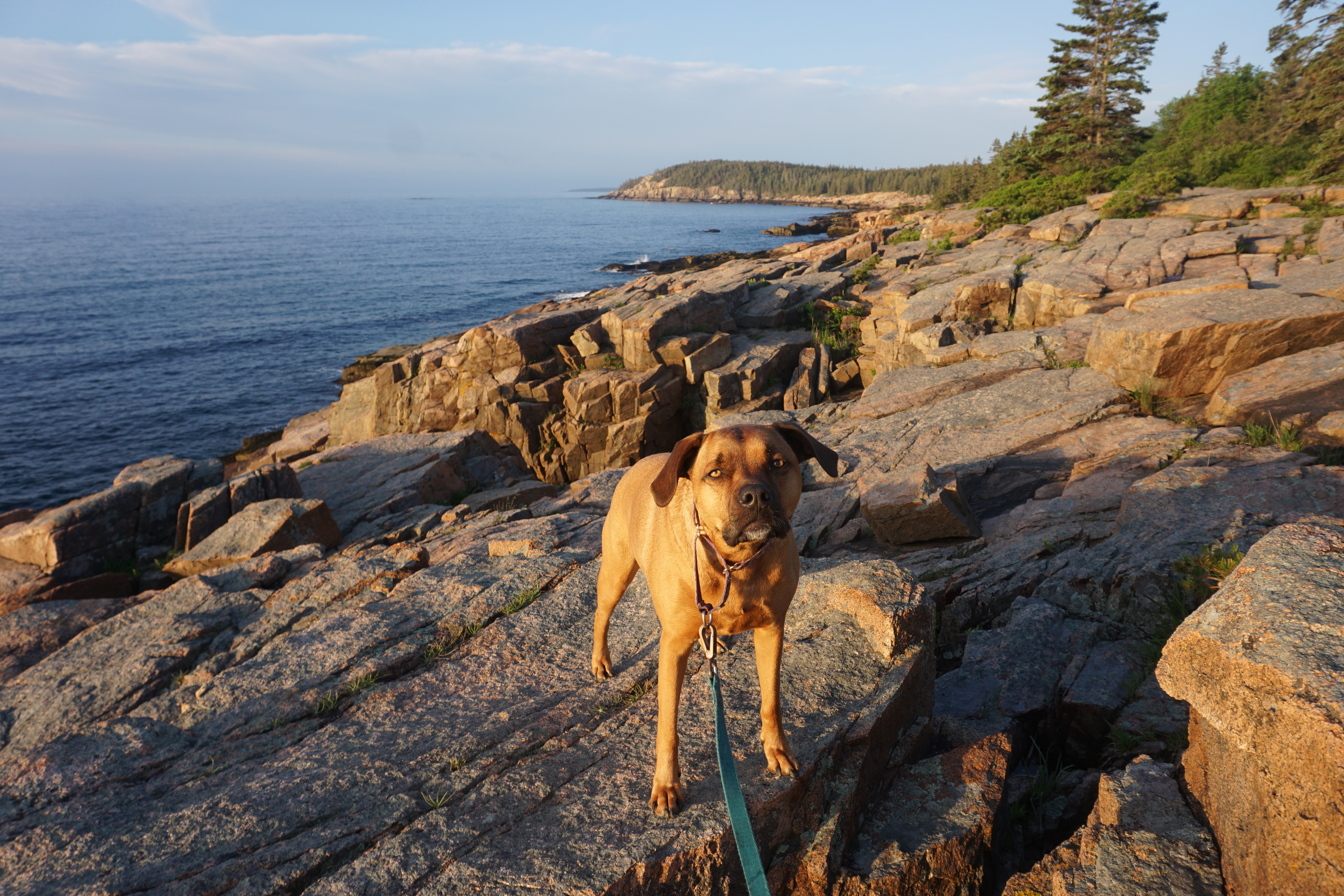 Throughout out day both pups enjoyed exploring. Wilma especially enjoyed sunbathing, while Gus appreciated diving into the long grass for whatever he always sees there, wagging his adorable tiny tail with excitement. Both Wilma and Gus appreciated some grassy rolls, rock hopping, and posing. I loved the spectacular scenery, fall colors, unbelievable weather, and even made friends with a deer. It was just a perfect day. So glad we could get back to Acadia National Park again this Fall (Rating: 5).