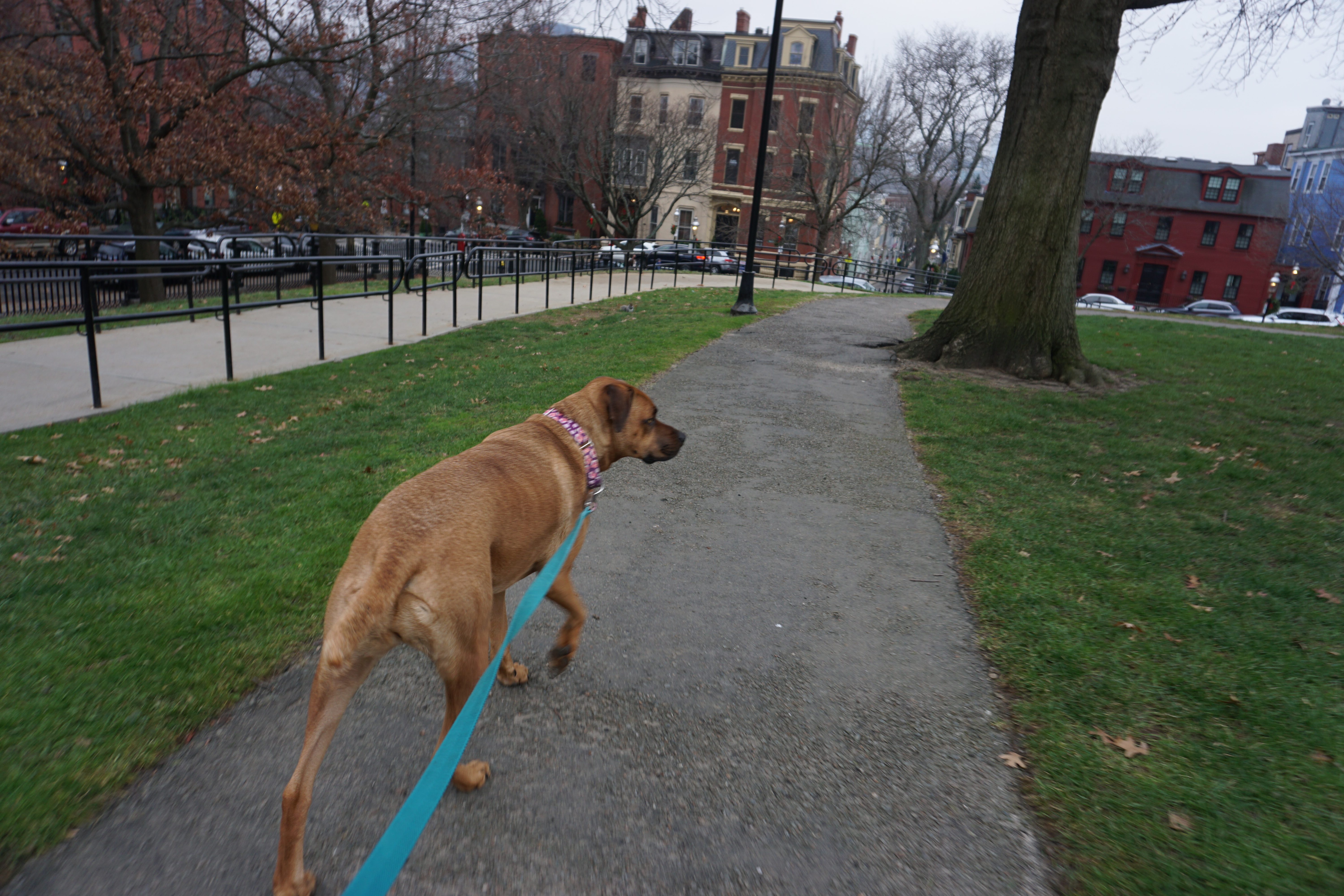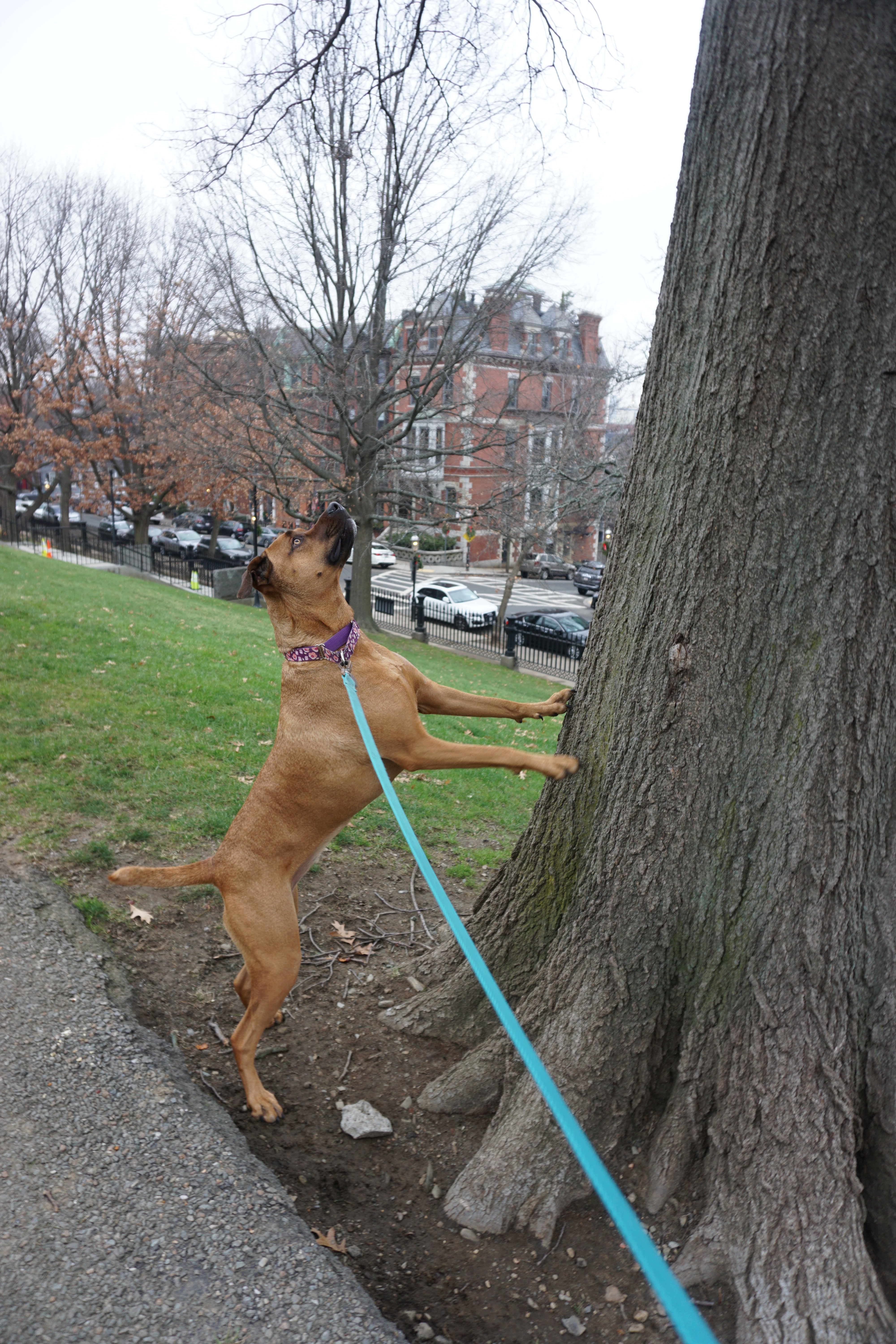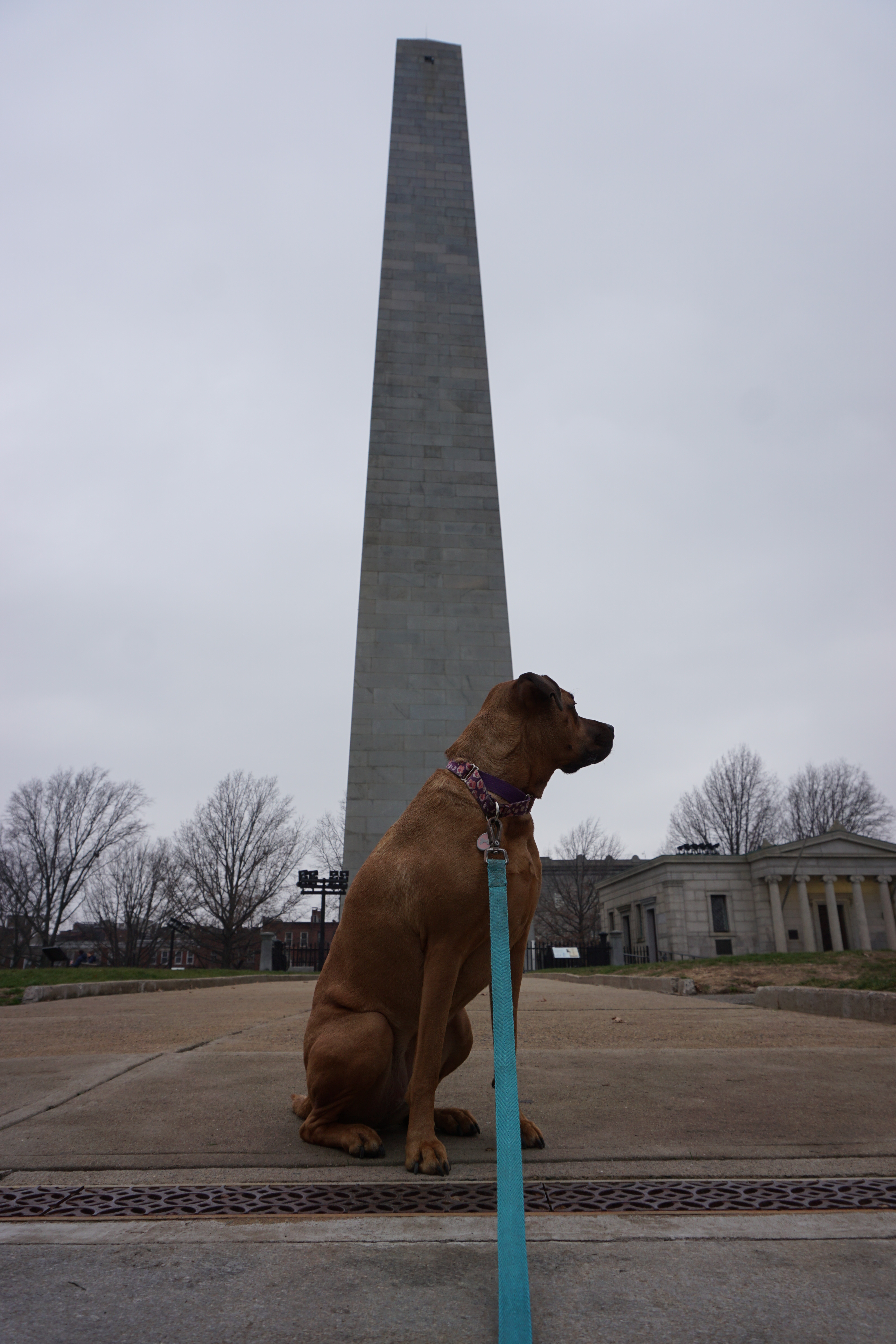 We had a dark Adventure to the Bunker Hill after a long walk at one of our favorite local parks. Upon arrival I immediately spotted lovely holiday wreaths adoring the lights around the park. We immediately headed up the hill to the Monument. There was an outer loop that we began trotting along, Wilma thrilled to spot numerous city squirrels. We took our time checking out the grounds and appreciating the moment. In between the neighborhood buildings we could spot views of the city, and bridges, hard to capture on camera but a beautiful perk to this simple park.