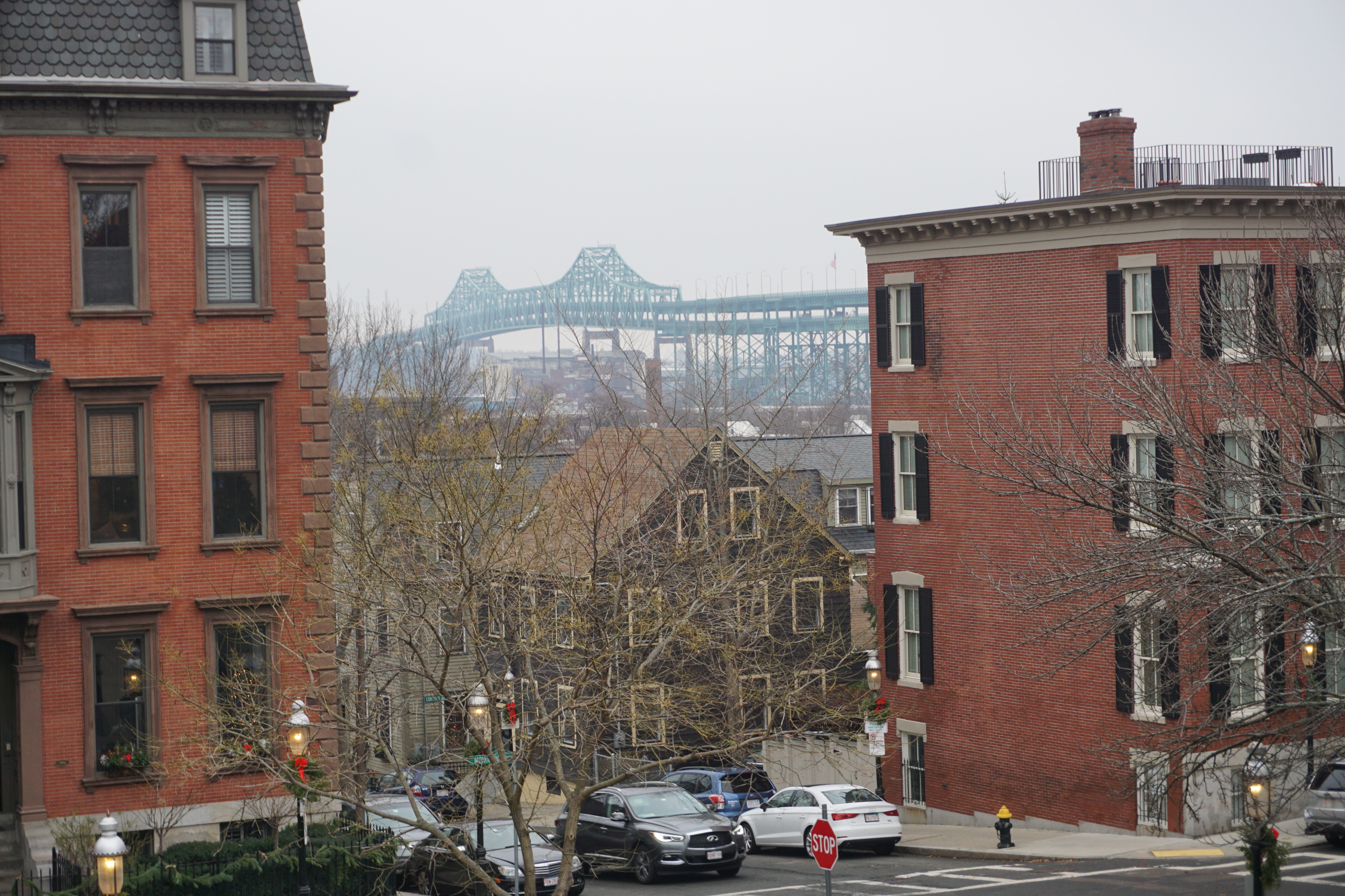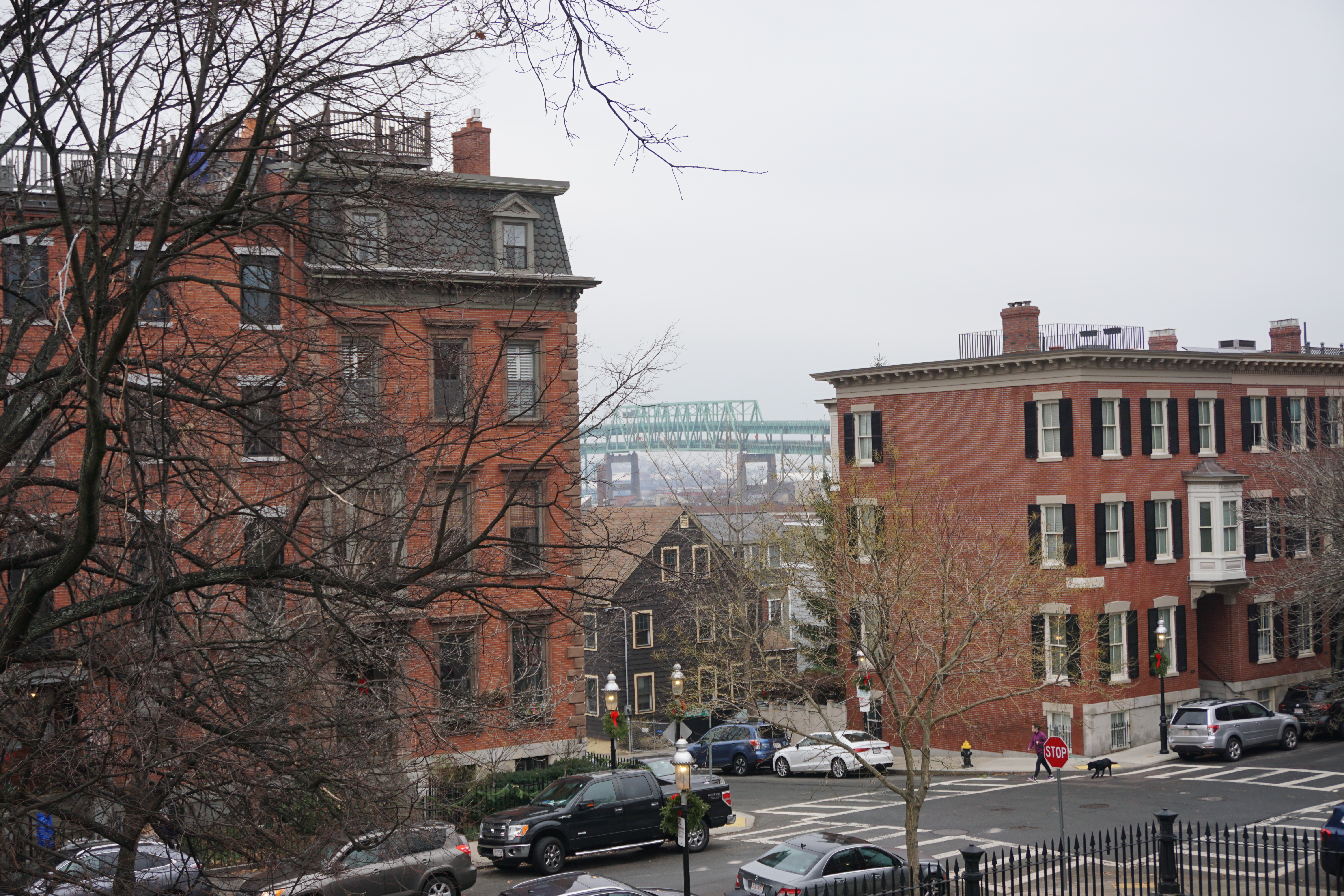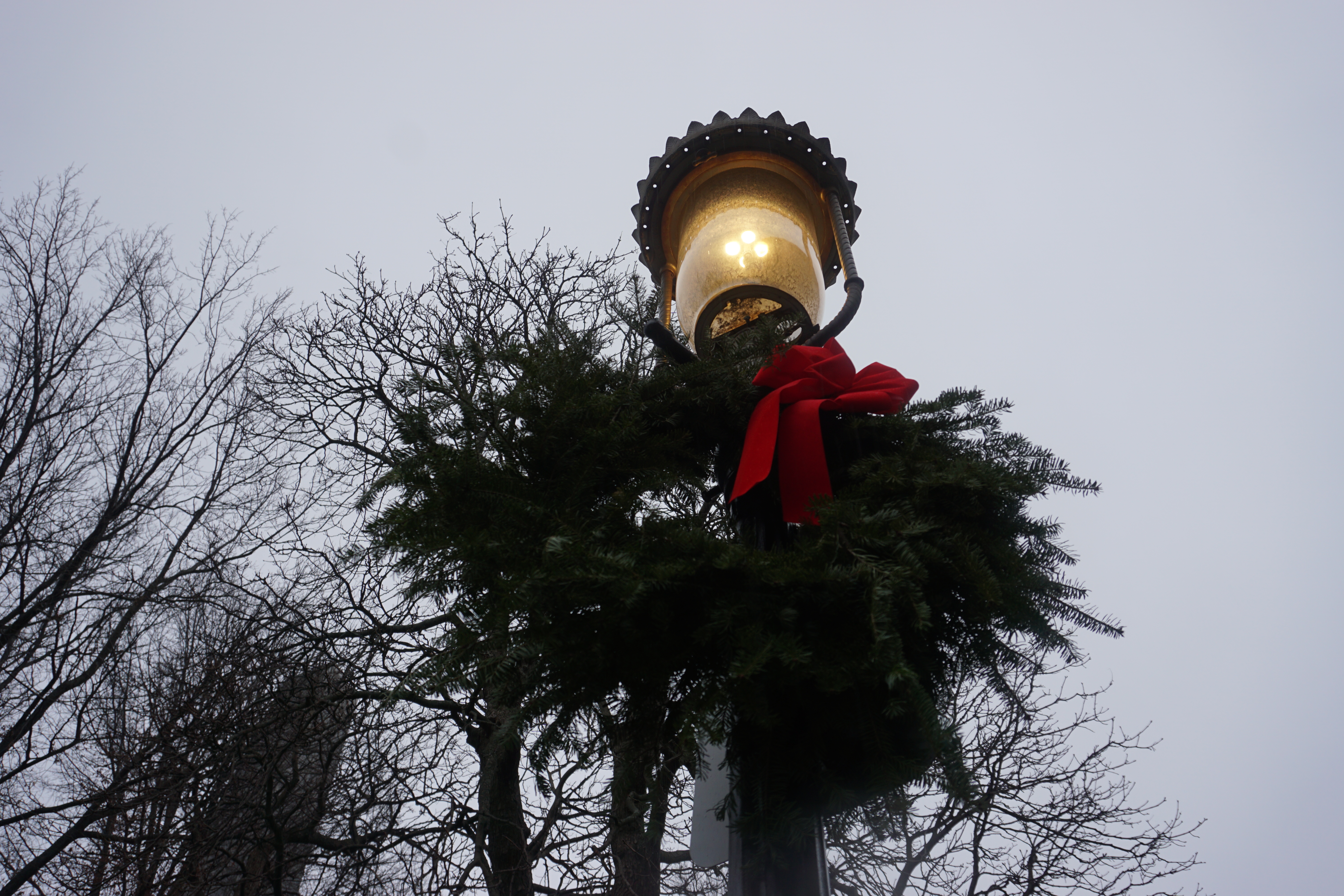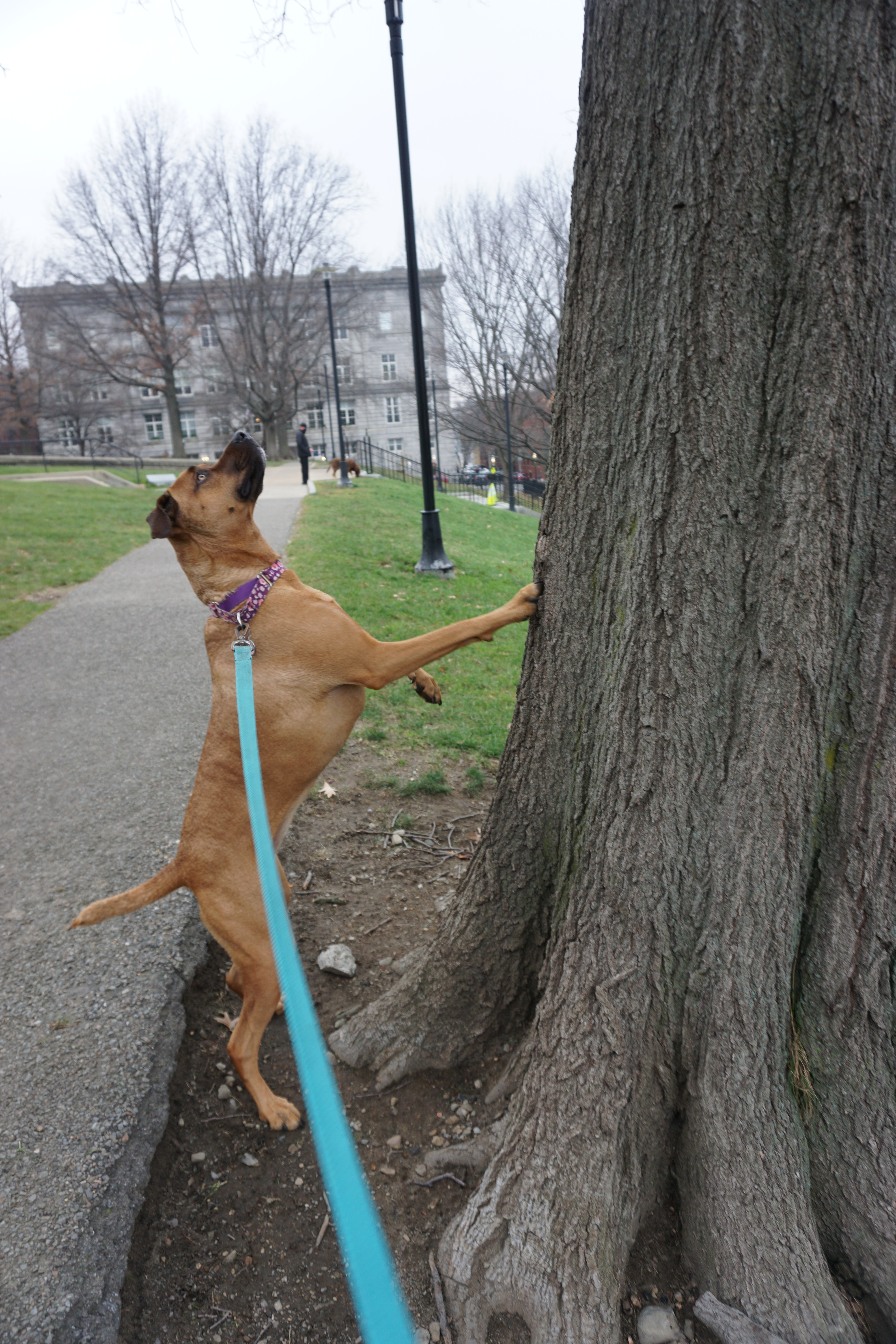 We had a dark Adventure to the Bunker Hill after a long walk at one of our favorite local parks. Upon arrival I immediately spotted lovely holiday wreaths adoring the lights around the park. We immediately headed up the hill to the Monument. There was an outer loop that we began trotting along, Wilma thrilled to spot numerous city squirrels. We took our time checking out the grounds and appreciating the moment. In between the neighborhood buildings we could spot views of the city, and bridges, hard to capture on camera but a beautiful perk to this simple park.