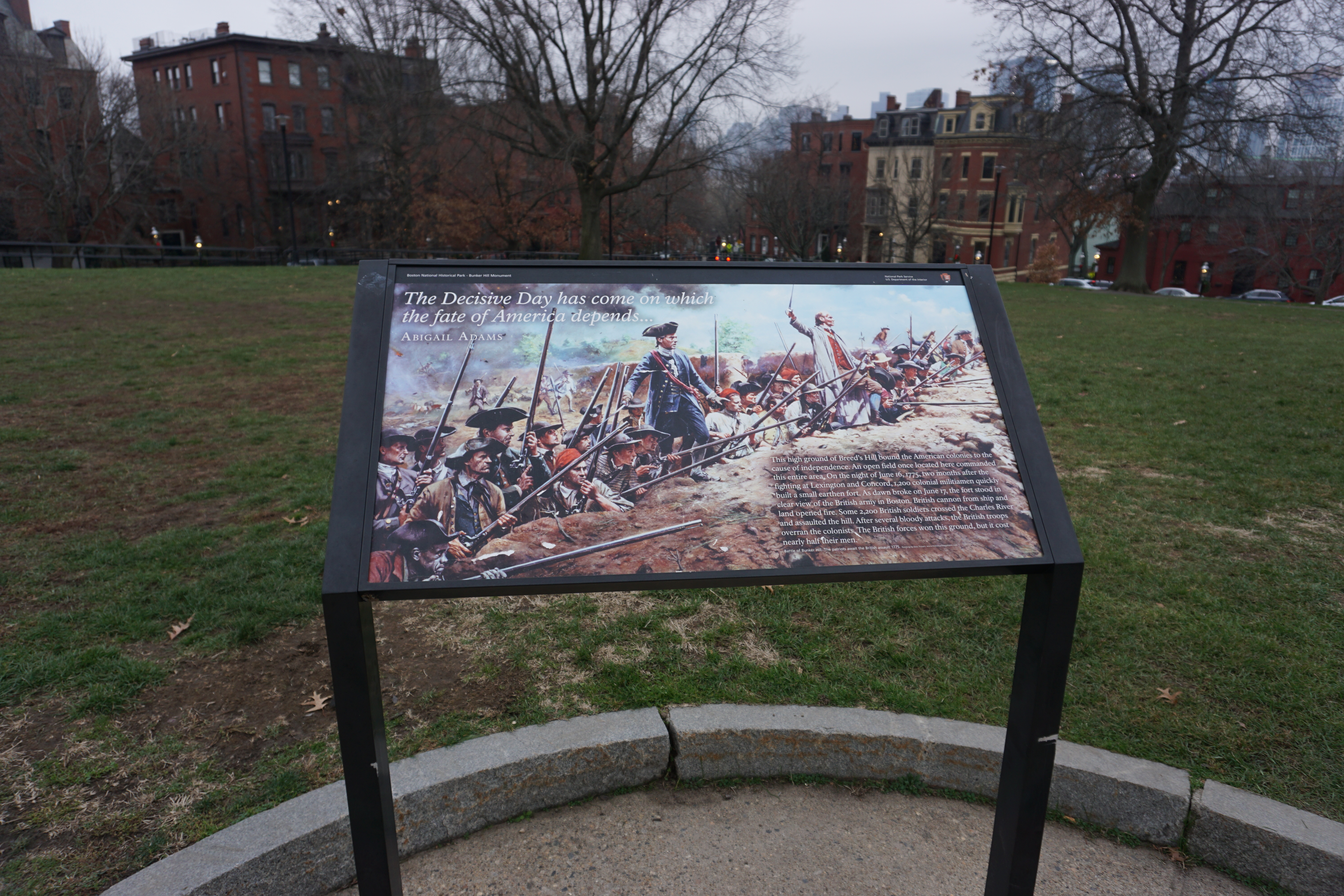 After trotting the outer grounds we made our way closer to check out the kiosks, the Colonial William Prescott Statue, and the architecture of the lodge. There was a Hanukkiah Menorah at the base of the Monument, and several benches to sit and enjoy the location. Bunker Hill is a very small but really was lovely. I can just imagine the view from the top of the Monument is beyond spectacular. So glad we could Adventure to Bunker Hill today (Rating: 3.5).